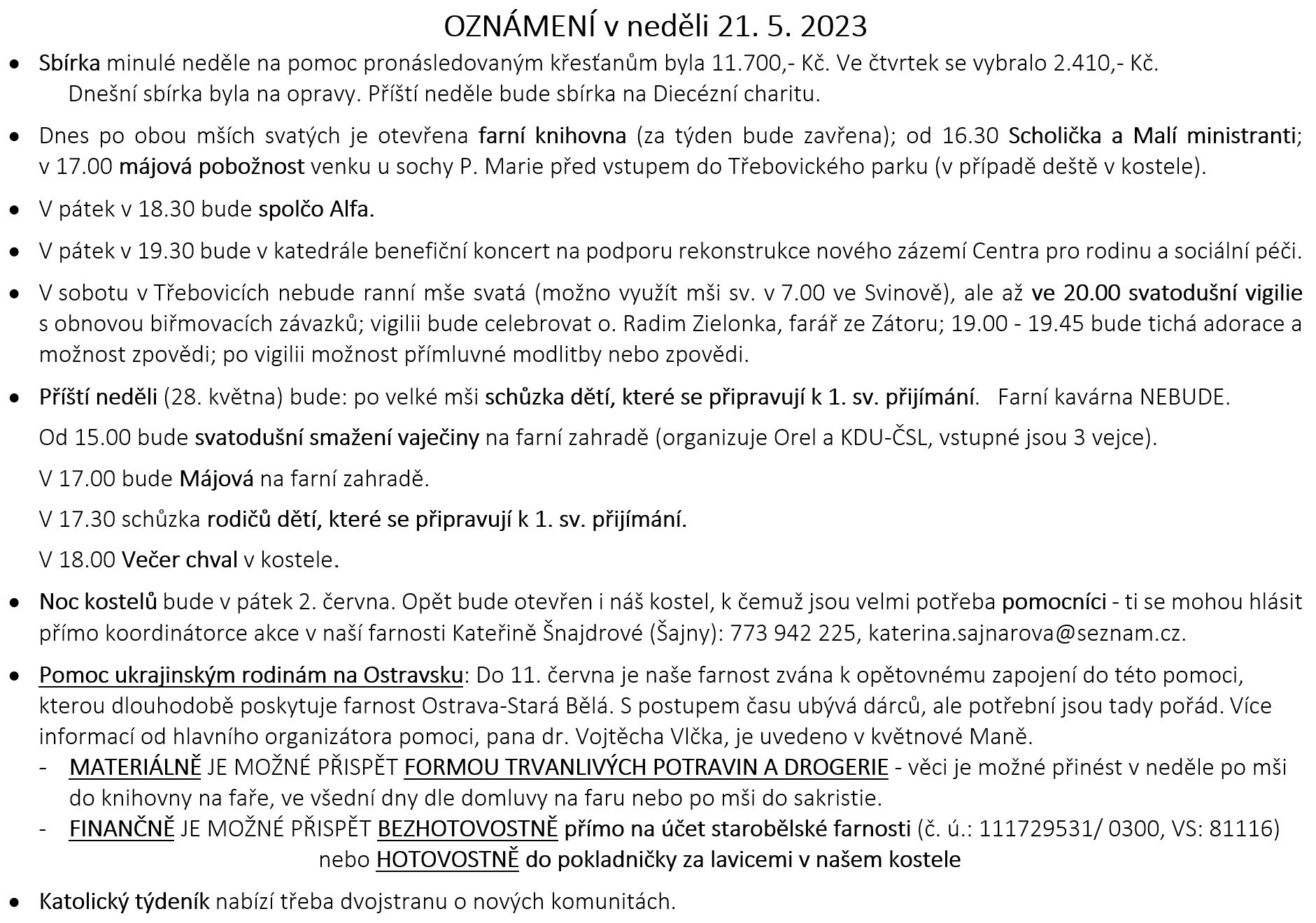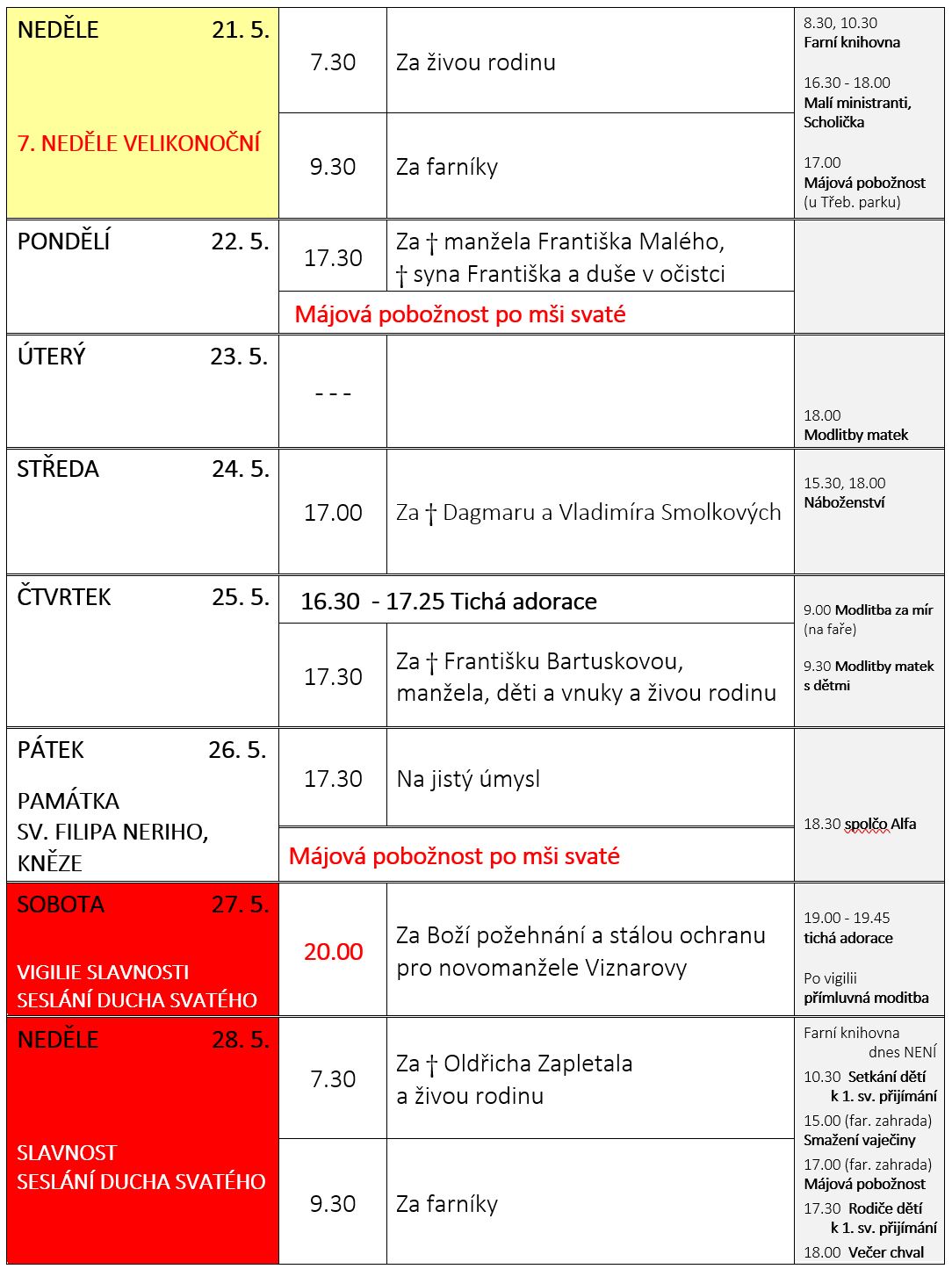 Ohlášky k 21. květnu