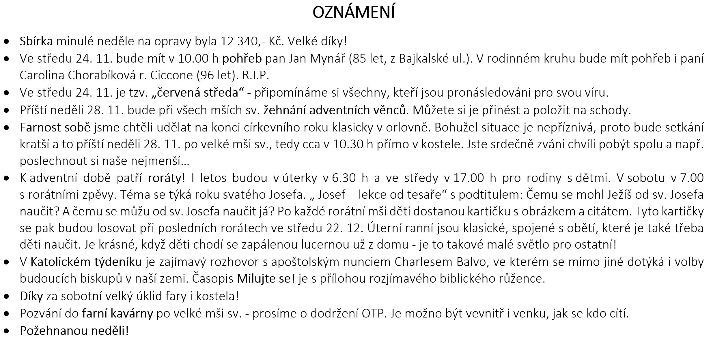 V neděli 21. listopadu slavíme SLAVNOST JEŽÍŠE KRISTA KRÁLE. Prohlédněte si pořad bohoslužeb a ohlášky.