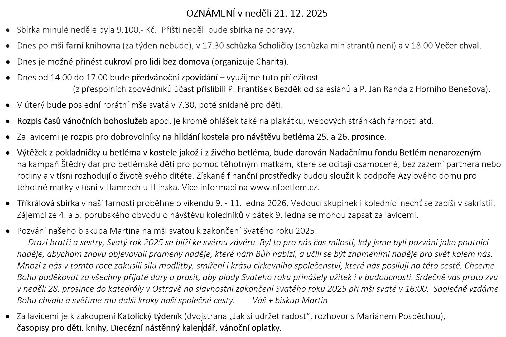 Ohlášky k 21. prosinci V neděli 21. prosince slavíme 4. NEDĚLI ADVENTNÍ. Prohlédněte si pořad bohoslužeb a ohlášky: Previous postOhlášky k 14. prosinci Next postOhlášky k 28. prosinci Komentáře nejsou povoleny.