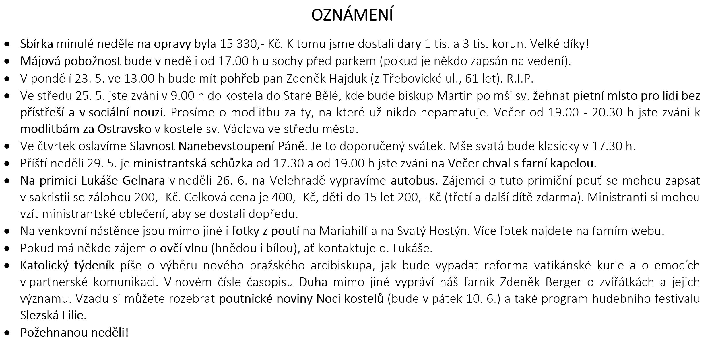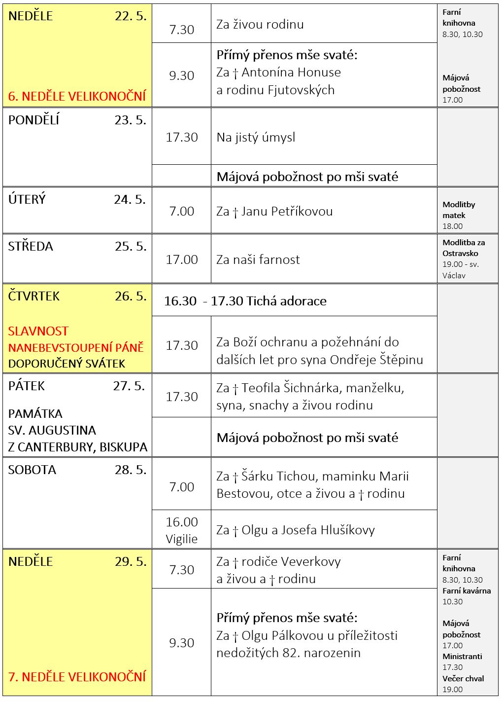 V neděli 22. května slavíme 6. NEDĚLI VELIKONOČNÍ. Prohlédněte si pořad bohoslužeb a ohlášky.