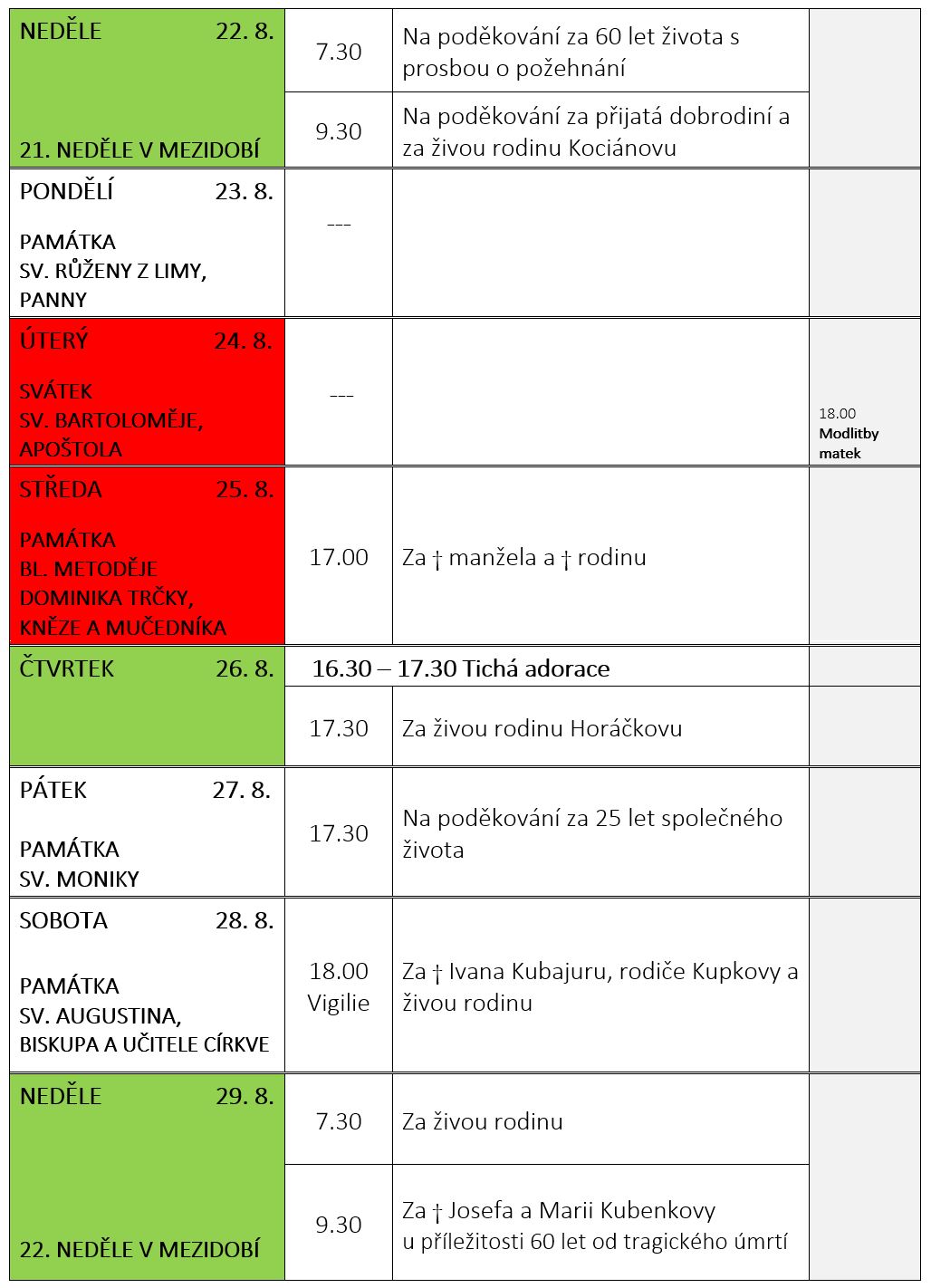 Ohlášky k 22. srpnu