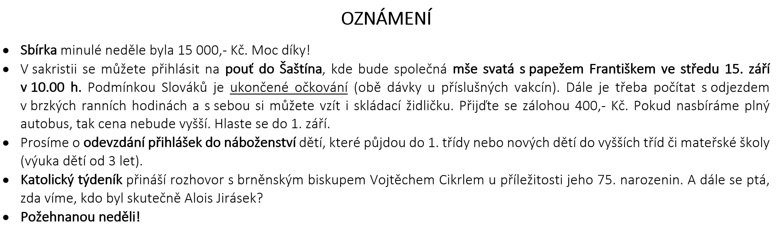 Ohlášky k 15. srpnu