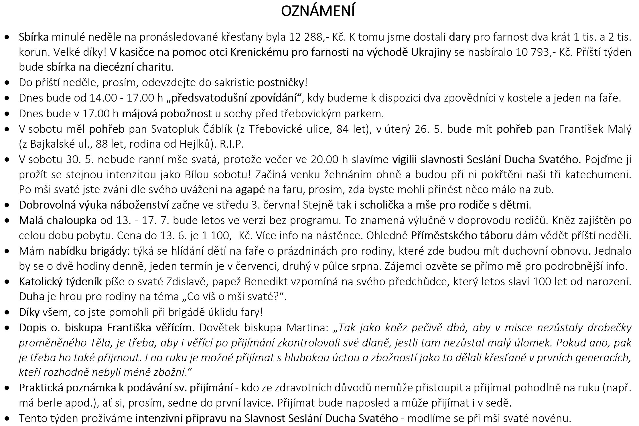 V neděli 24. května slavíme  7. NEDĚLI VELIKONOČNÍ. Prohlédněte si pořad bohoslužeb a ohlášky.