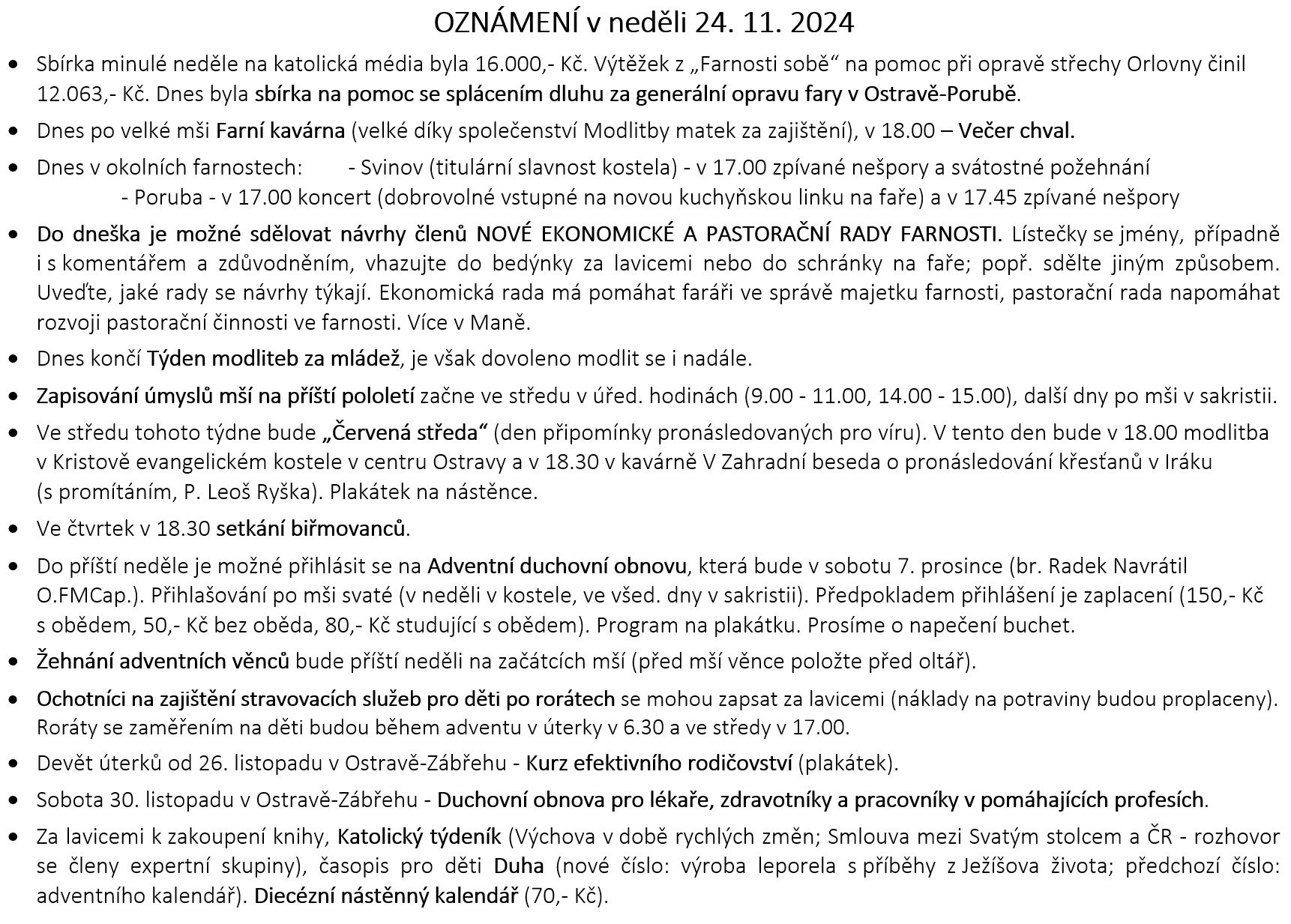 Ohlášky k 24. listopadu V neděli 24. listopadu slavíme SLAVNOST JEŽÍŠE KRISTA KRÁLE. Prohlédněte si pořad bohoslužeb a ohlášky: Previous postOhlášky k 17. listopadu Next postOhlášky k 1. prosinci Komentáře nejsou povoleny.