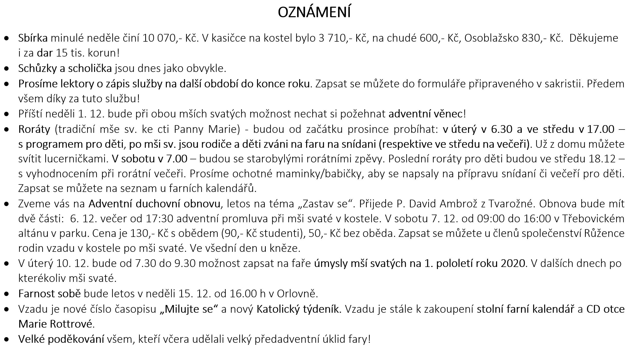 Ohlášky k 24.listopadu V neděli 24. listopadu slavíme Slavnost Ježíše Krista Krále. Prohlédněte si pořad bohoslužeb a ohlášky. Previous postOhlášky k 17.listopadu Next postOhlášky k 1.prosinci Komentáře nejsou povoleny.