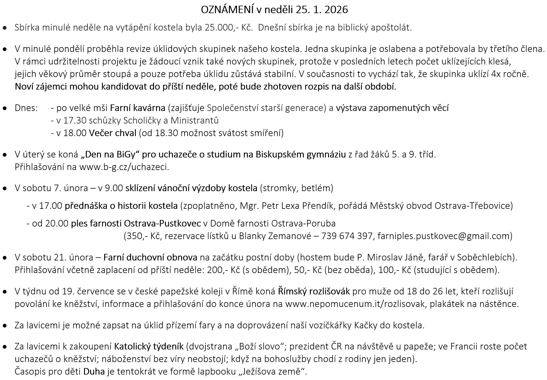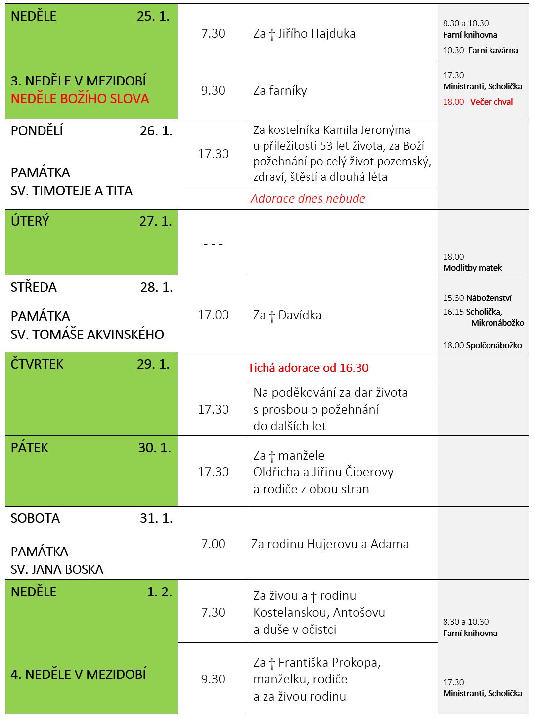 Ohlášky k 25. lednu V neděli 25. ledna slavíme 3. NEDĚLI V MEZIDOBÍ – NEDĚLI BOŽÍHO SLOVA. Prohlédněte si pořad bohoslužeb a ohlášky: Previous postOhlášky k 18. lednu Next postOhlášky k 1. únoru Komentáře nejsou povoleny.