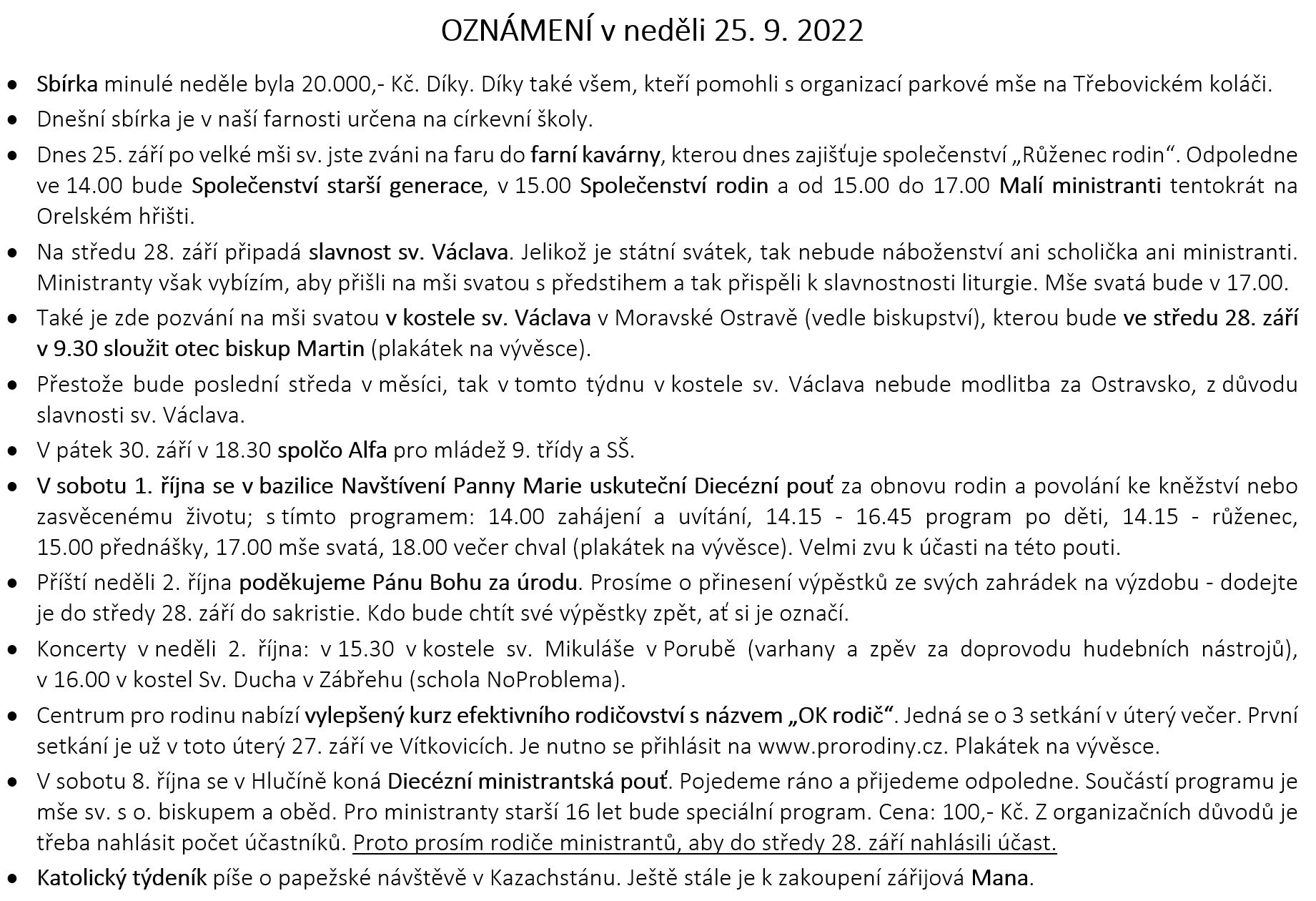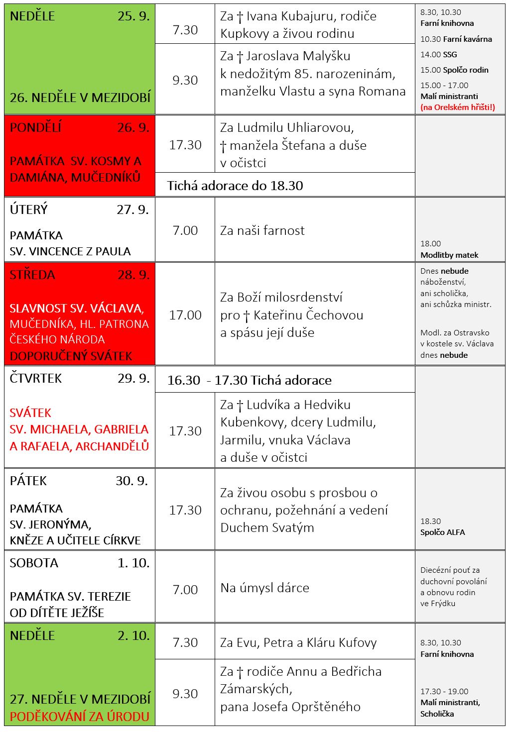 Ohlášky k 25. září V neděli 25. září slavíme 26. NEDĚLI V MEZIDOBÍ. Prohlédněte si pořad bohoslužeb a ohlášky. Previous postOhlášky k 18. září Next postOhlášky k 2. říjnu Komentáře nejsou povoleny.