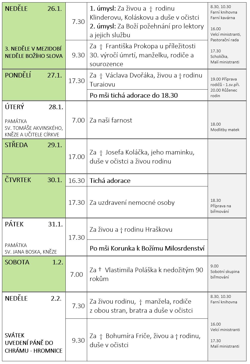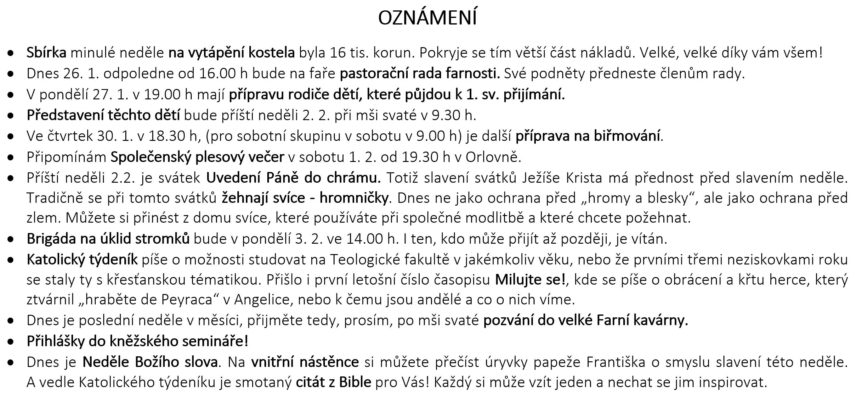 V neděli 26. ledna slavíme 3. NEDĚLI V MEZIDOBÍ – NEDĚLI BOŽÍHO SLOVA. Prohlédněte si pořad bohoslužeb a ohlášky.