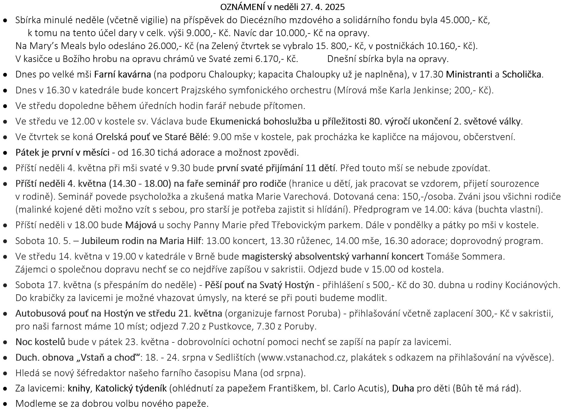 Ohlášky k 27. dubnu