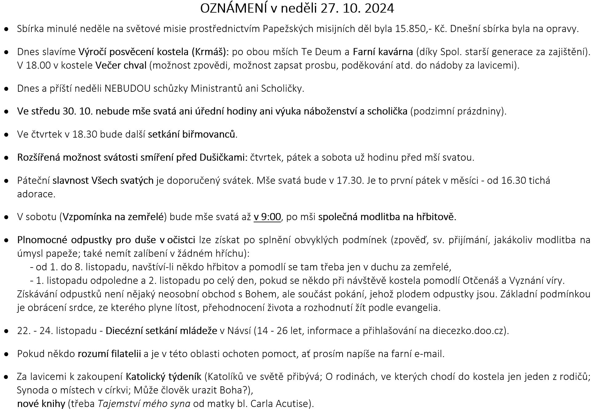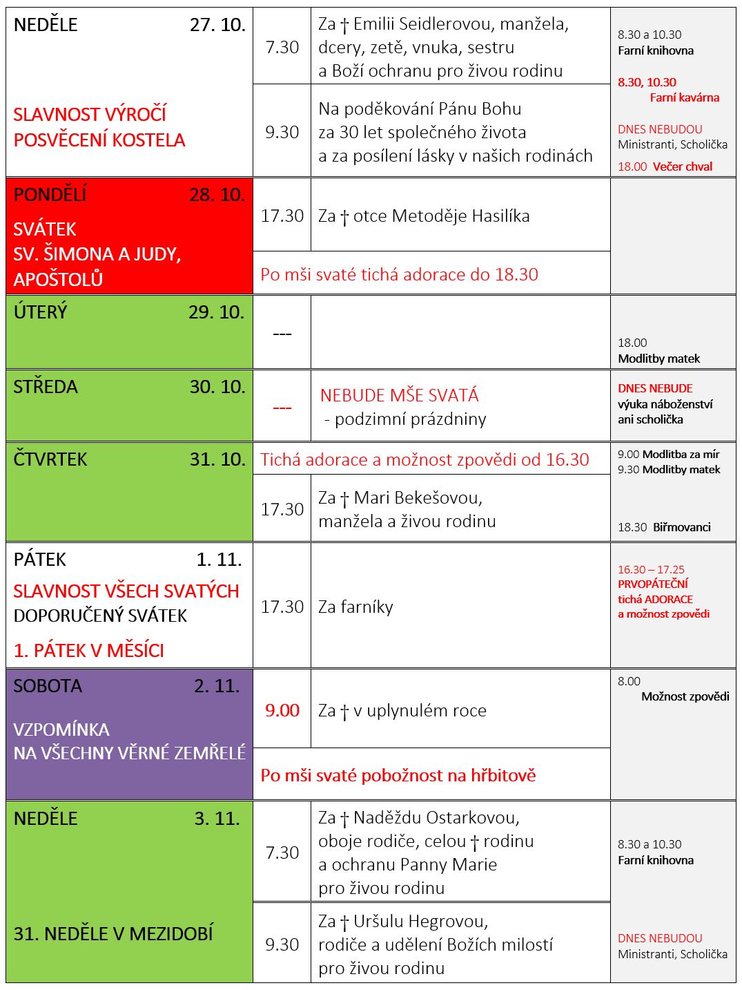 V neděli 27. října slavíme SLAVNOST VÝROČÍ POSVĚCENÍ KOSTELA. Prohlédněte si pořad bohoslužeb a ohlášky:
