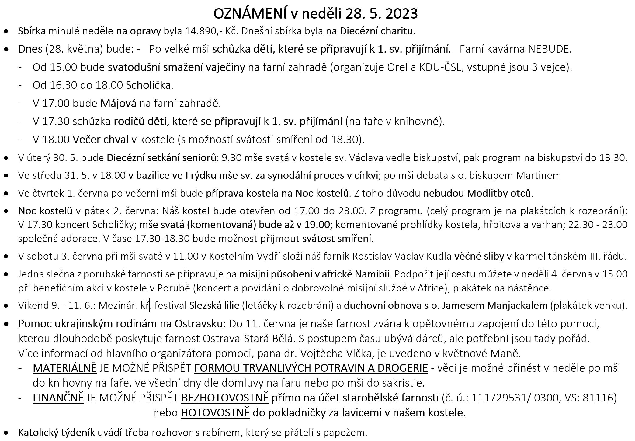 V neděli 28. května slavíme SLAVNOST SESLÁNÍ DUCHA SVATÉHO. Prohlédněte si pořad bohoslužeb a ohlášky.