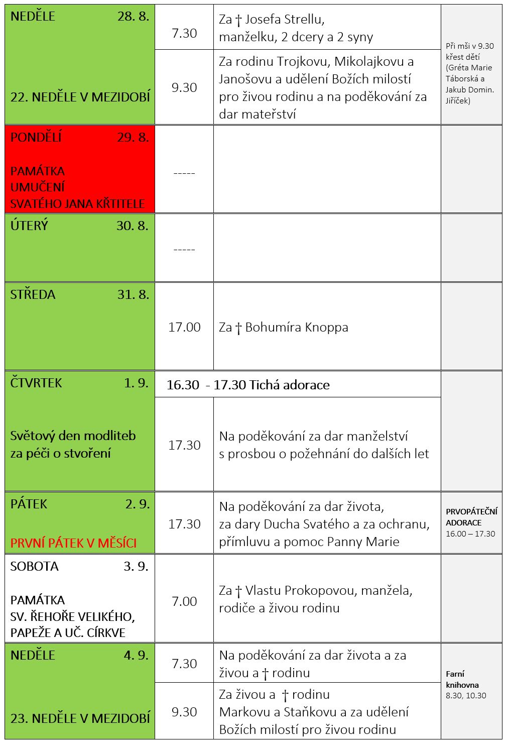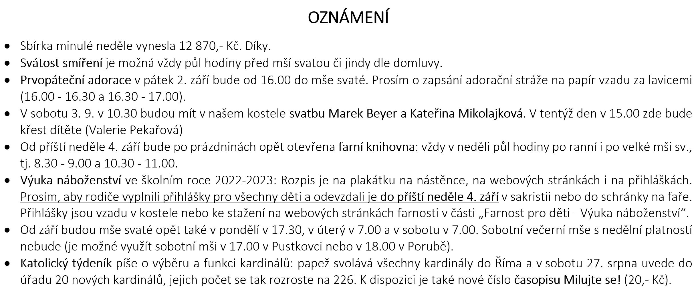 Ohlášky k 28. srpnu V neděli 28. srpna slavíme 22. NEDĚLI V MEZIDOBÍ. Prohlédněte si pořad bohoslužeb a ohlášky. Previous postOhlášky k 21. srpnu Next postOhlášky k 4. září Komentáře nejsou povoleny.