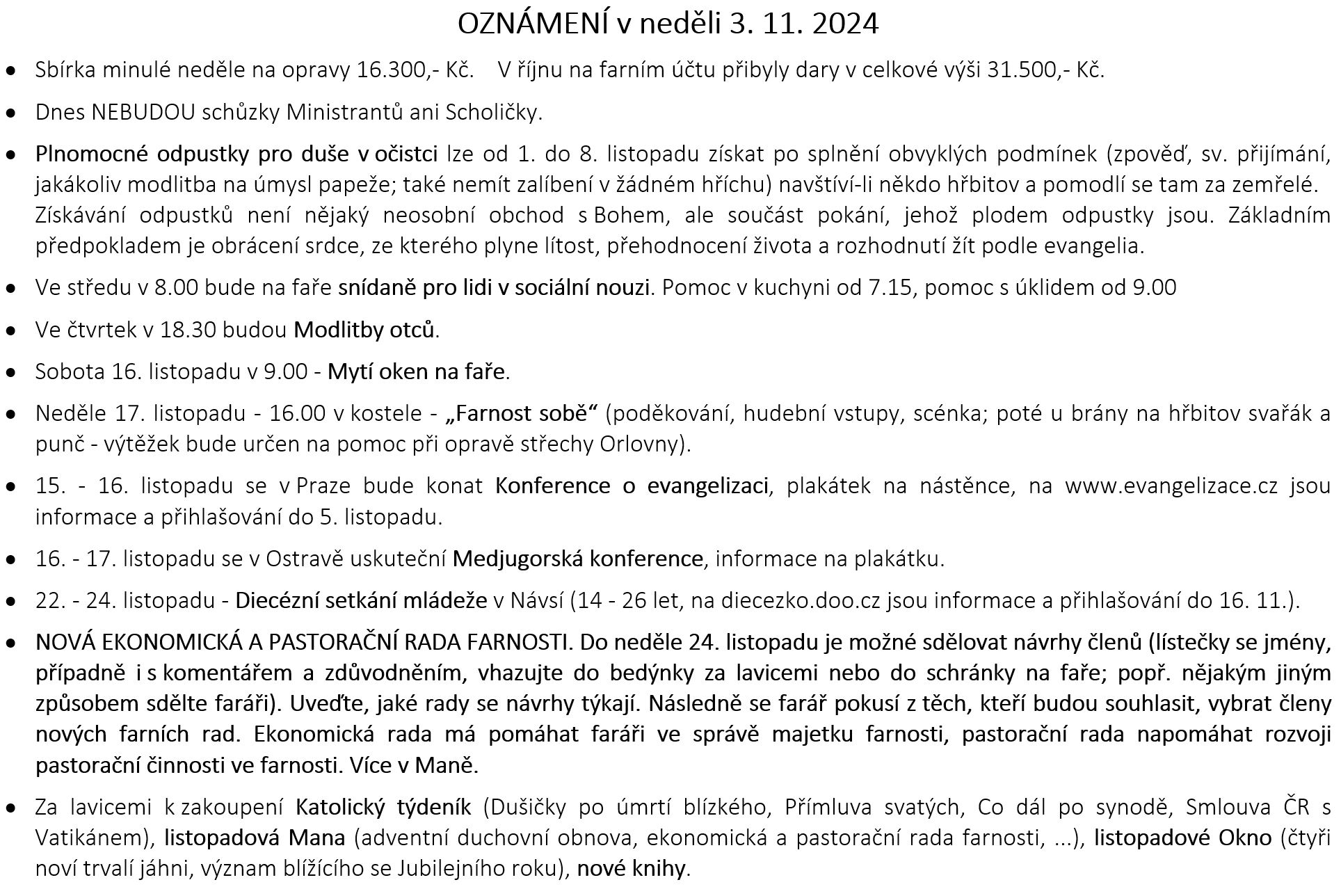 Ohlášky k 3. listopadu V neděli 3. listopadu slavíme 31. NEDĚLI V MEZIDOBÍ. Prohlédněte si pořad bohoslužeb a ohlášky: Previous postOhlášky k 27. říjnu Next postOhlášky k 10. listopadu Komentáře nejsou povoleny.