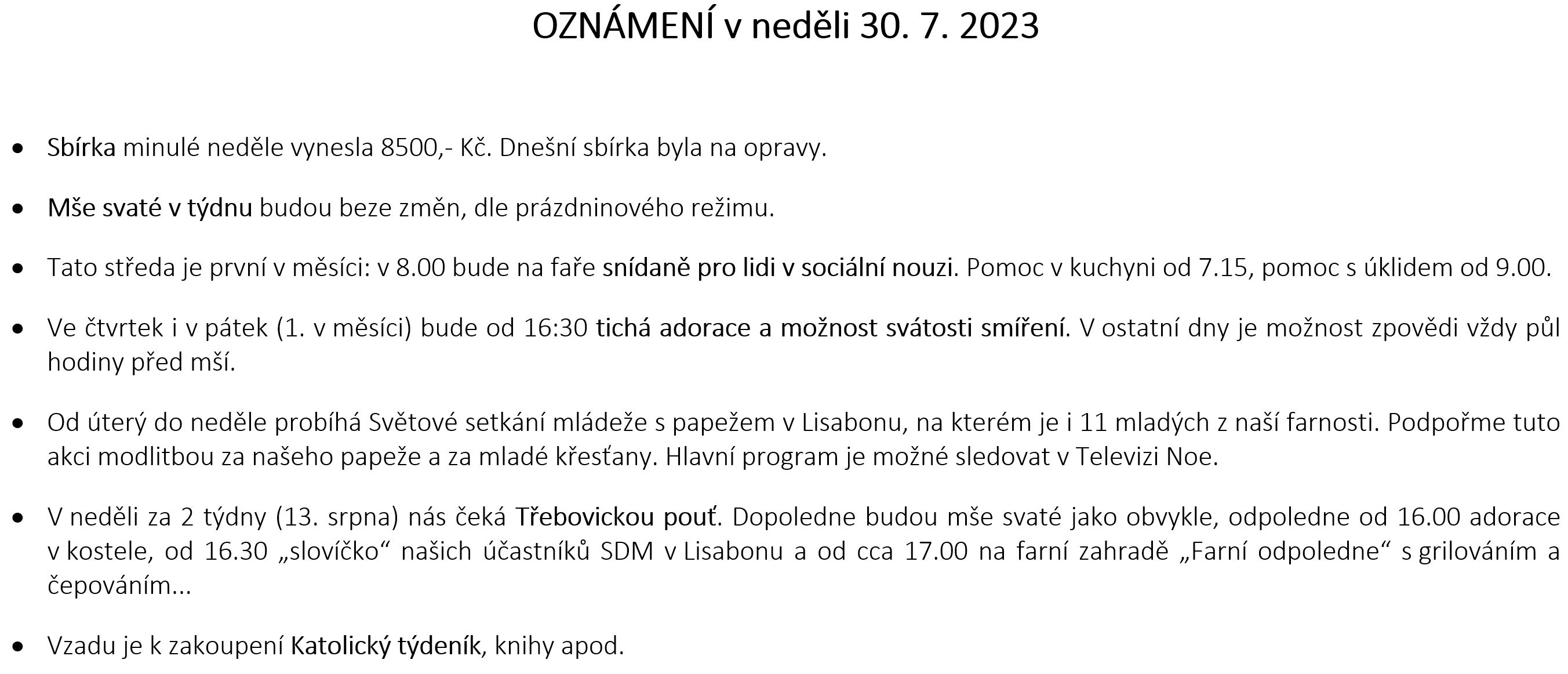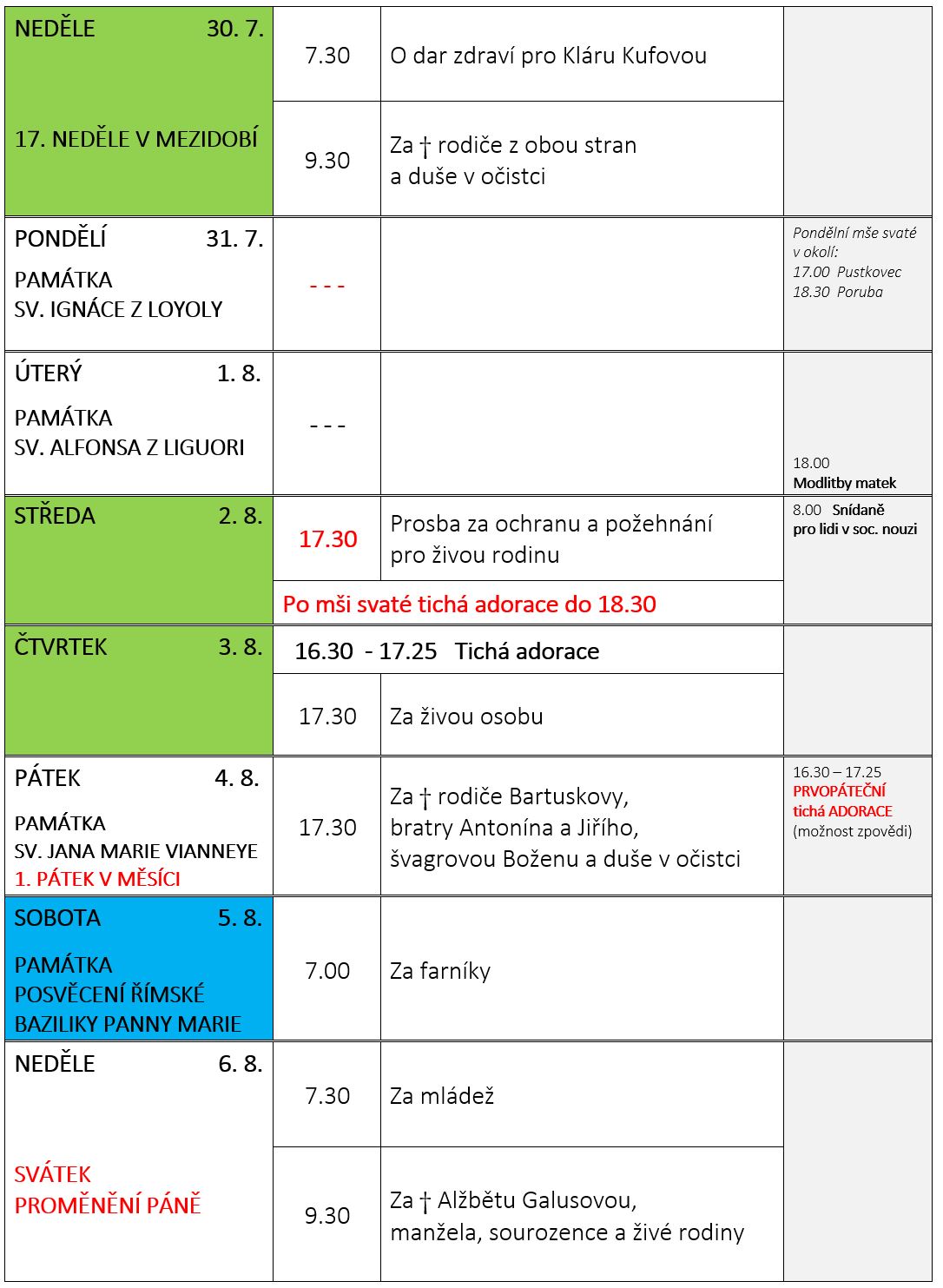 V neděli 30. července slavíme 17. NEDĚLI V MEZIDOBÍ. Prohlédněte si pořad bohoslužeb a ohlášky.