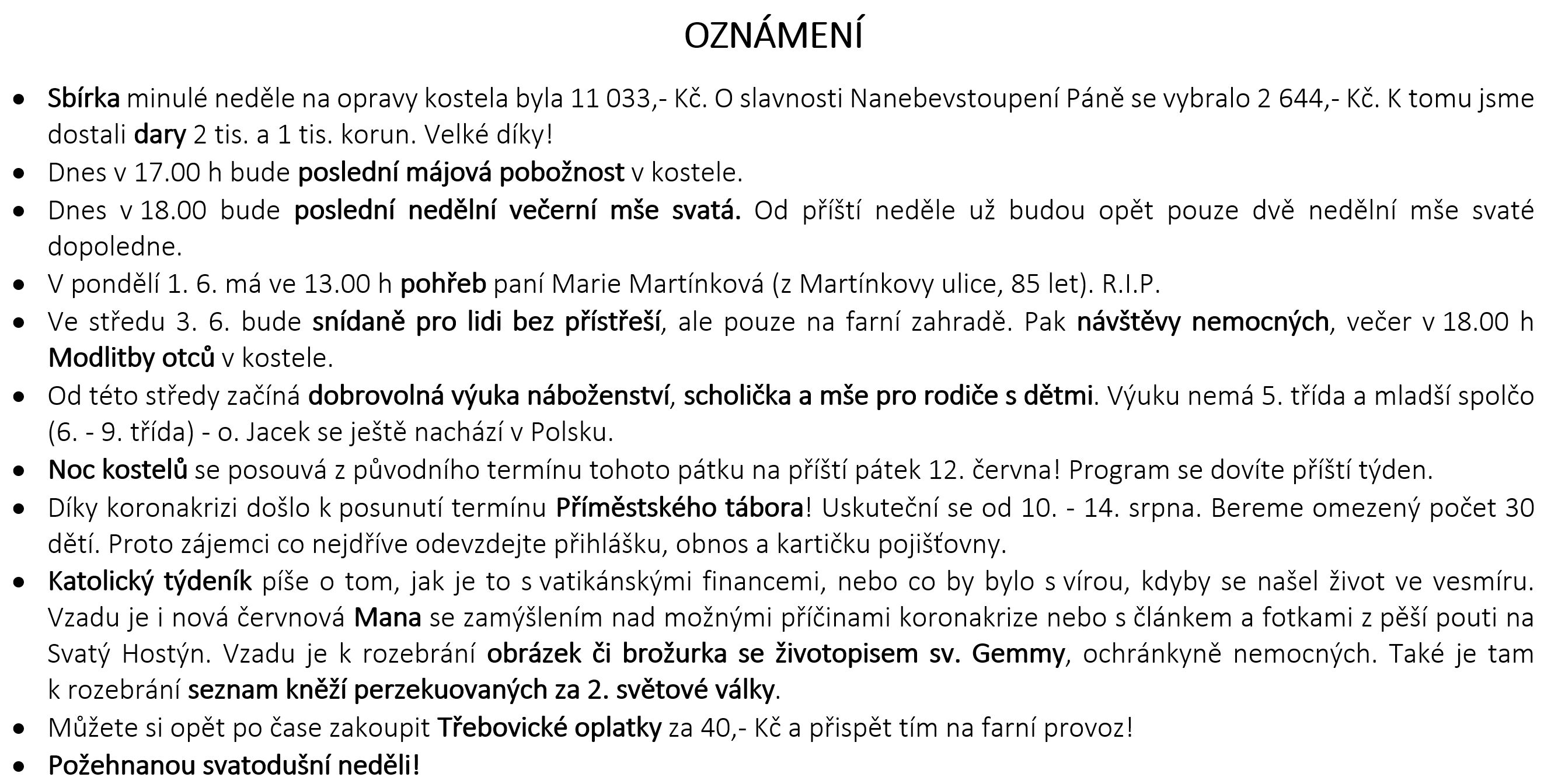 Ohlášky k 31. květnu V neděli 31. května slavíme SLAVNOST SESLÁNÍ DUCHA SVATÉHO. Prohlédněte si pořad bohoslužeb a ohlášky. Previous postOhlášky k 24. květnu Next postOhlášky k 7. červnu Komentáře nejsou povoleny.