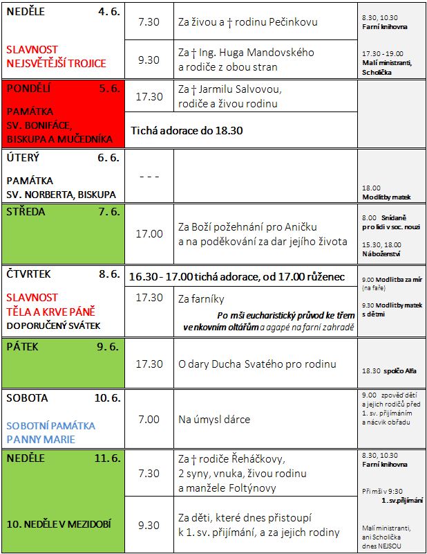 V neděli 4. června slavíme SLAVNOST NEJSVĚTĚJŠÍ TROJICE. Prohlédněte si pořad bohoslužeb a ohlášky.