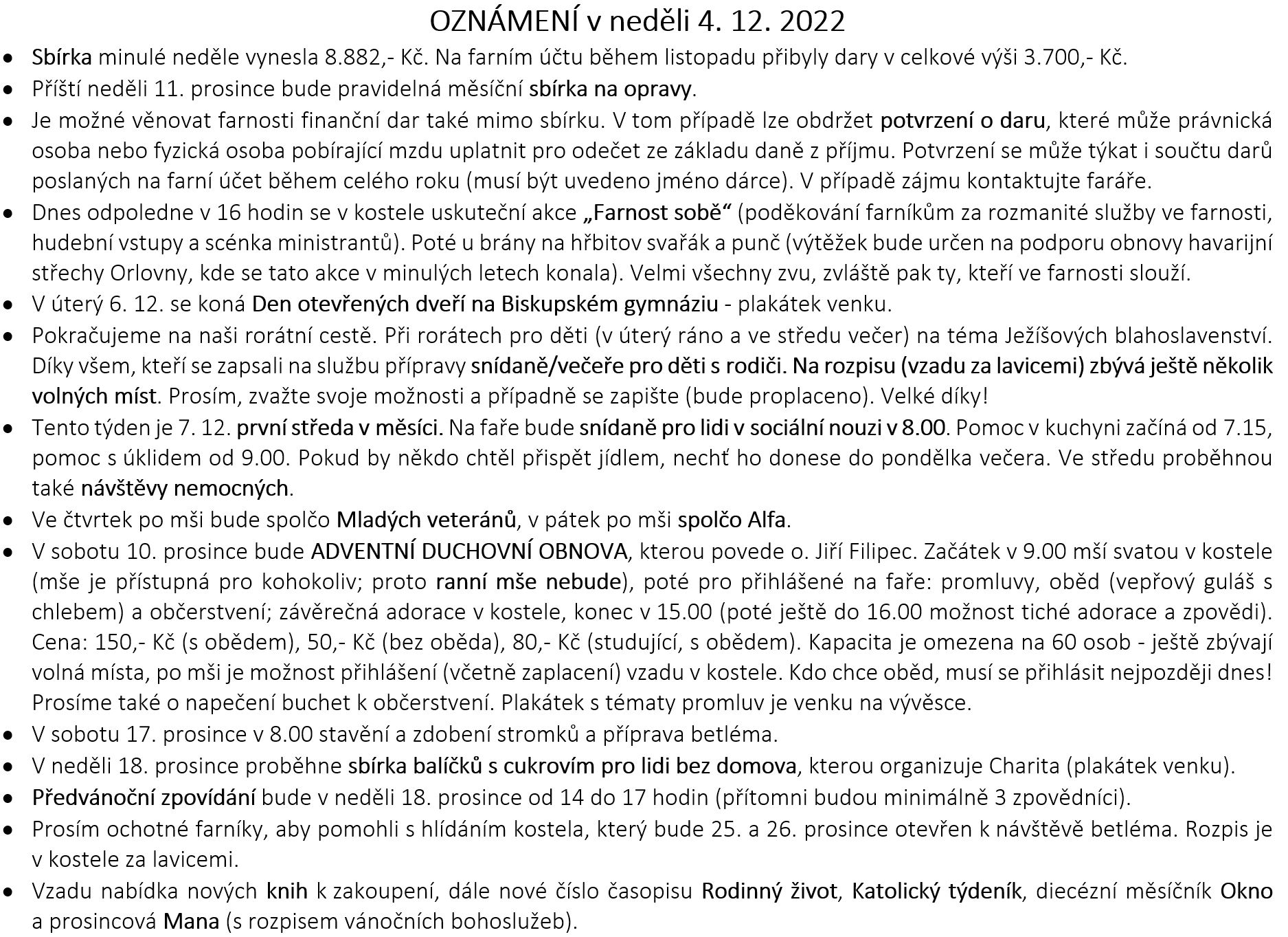 V neděli 4. prosince slavíme 2. NEDĚLI ADVENTNÍ. Prohlédněte si pořad bohoslužeb a ohlášky.