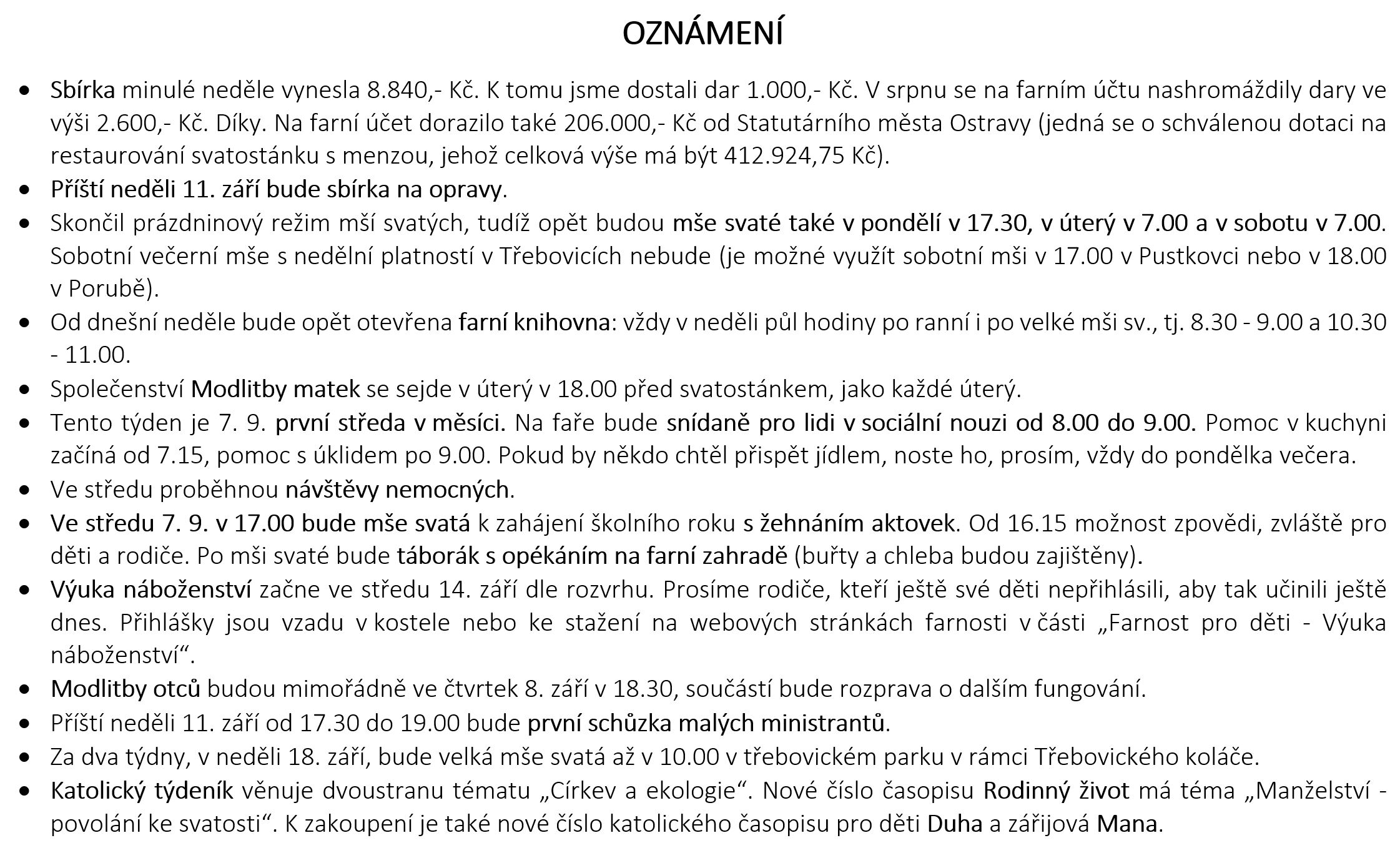 Ohlášky k 4. září V neděli 4. září slavíme 23. NEDĚLI V MEZIDOBÍ. Prohlédněte si pořad bohoslužeb a ohlášky. Previous postOhlášky k 28. srpnu Next postOhlášky k 11. září Komentáře nejsou povoleny.