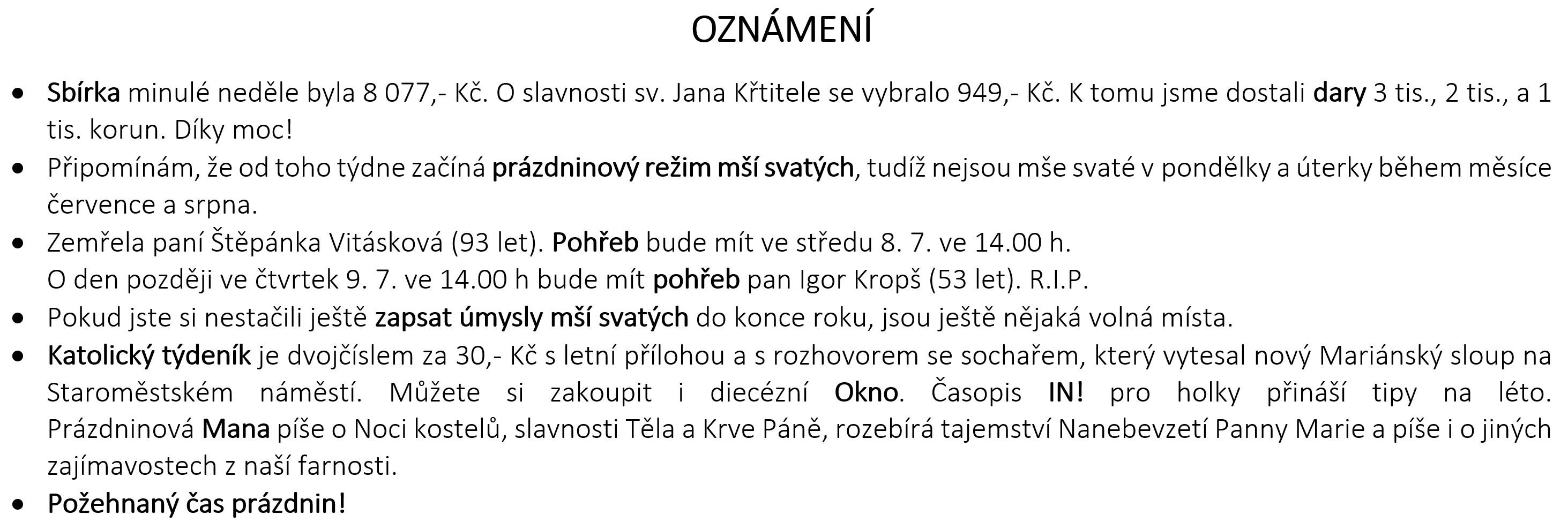 Ohlášky k 5. červenci V neděli 5. července slavíme SLAVNOST SV. CYRILA A METODĚJE. Prohlédněte si pořad bohoslužeb a ohlášky. Previous postOhlášky k 28. červnu Next postOhlášky k 12. červenci Komentáře nejsou povoleny.