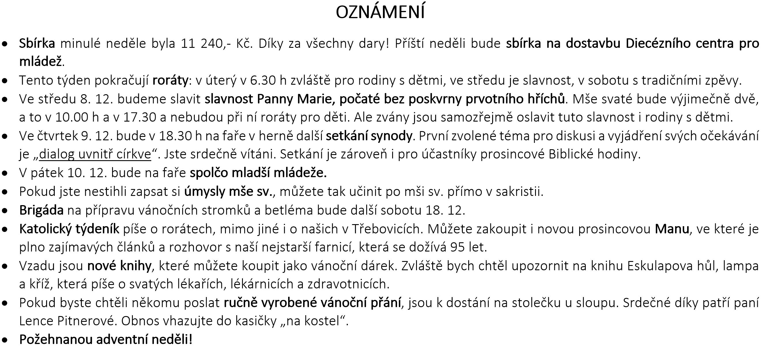 Ohlášky k 5. prosinci V neděli 5. prosince slavíme 2. NEDĚLI ADVENTNÍ. Prohlédněte si pořad bohoslužeb a ohlášky. Previous postOhlášky k 28. listopadu Next postOhlášky k 12. prosinci Komentáře nejsou povoleny.