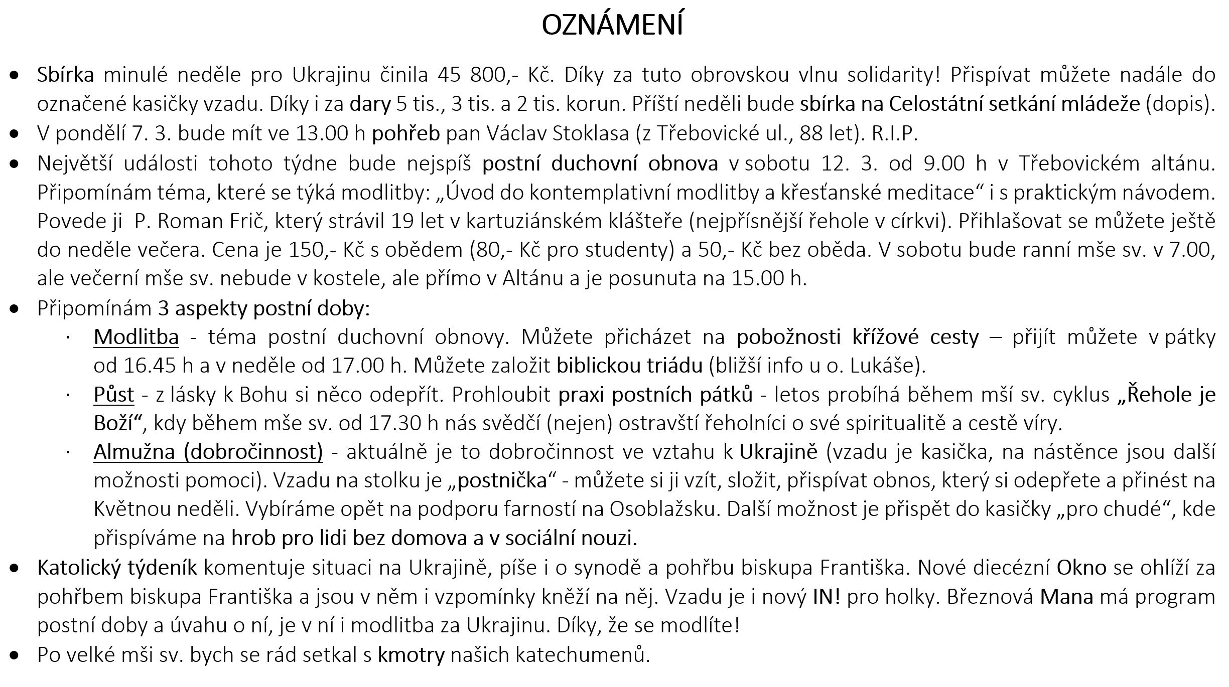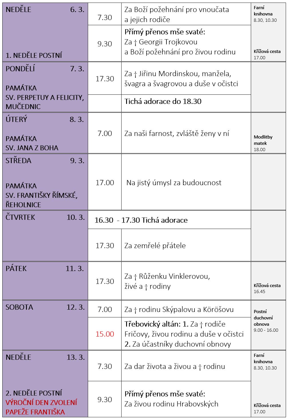 V neděli 6. března slavíme 1. NEDĚLI POSTNÍ.  Prohlédněte si pořad bohoslužeb a ohlášky.