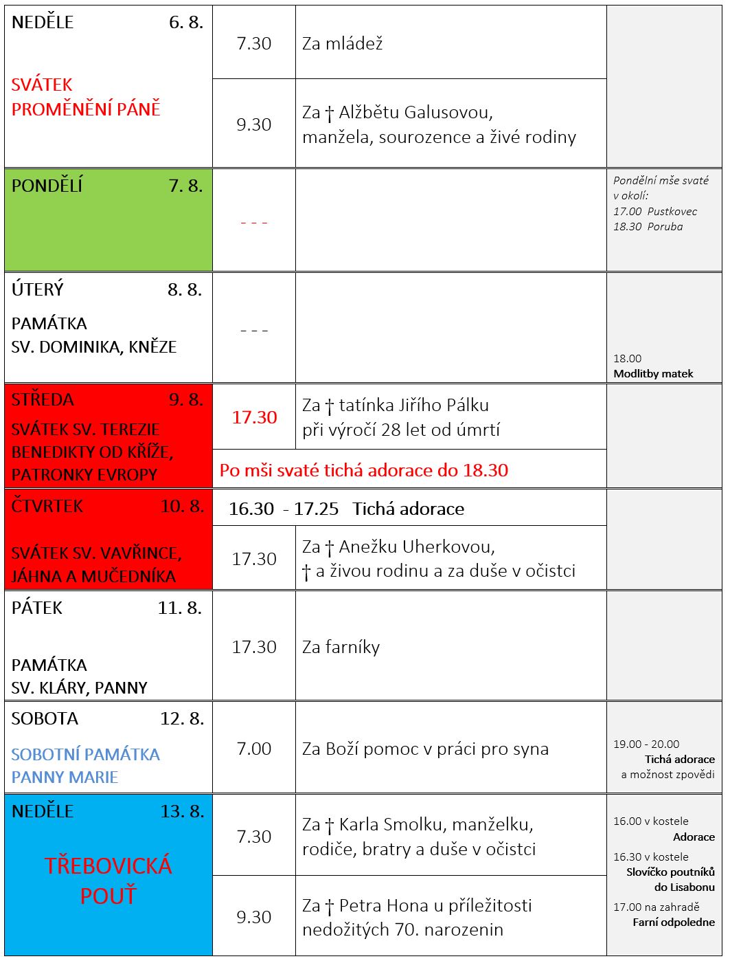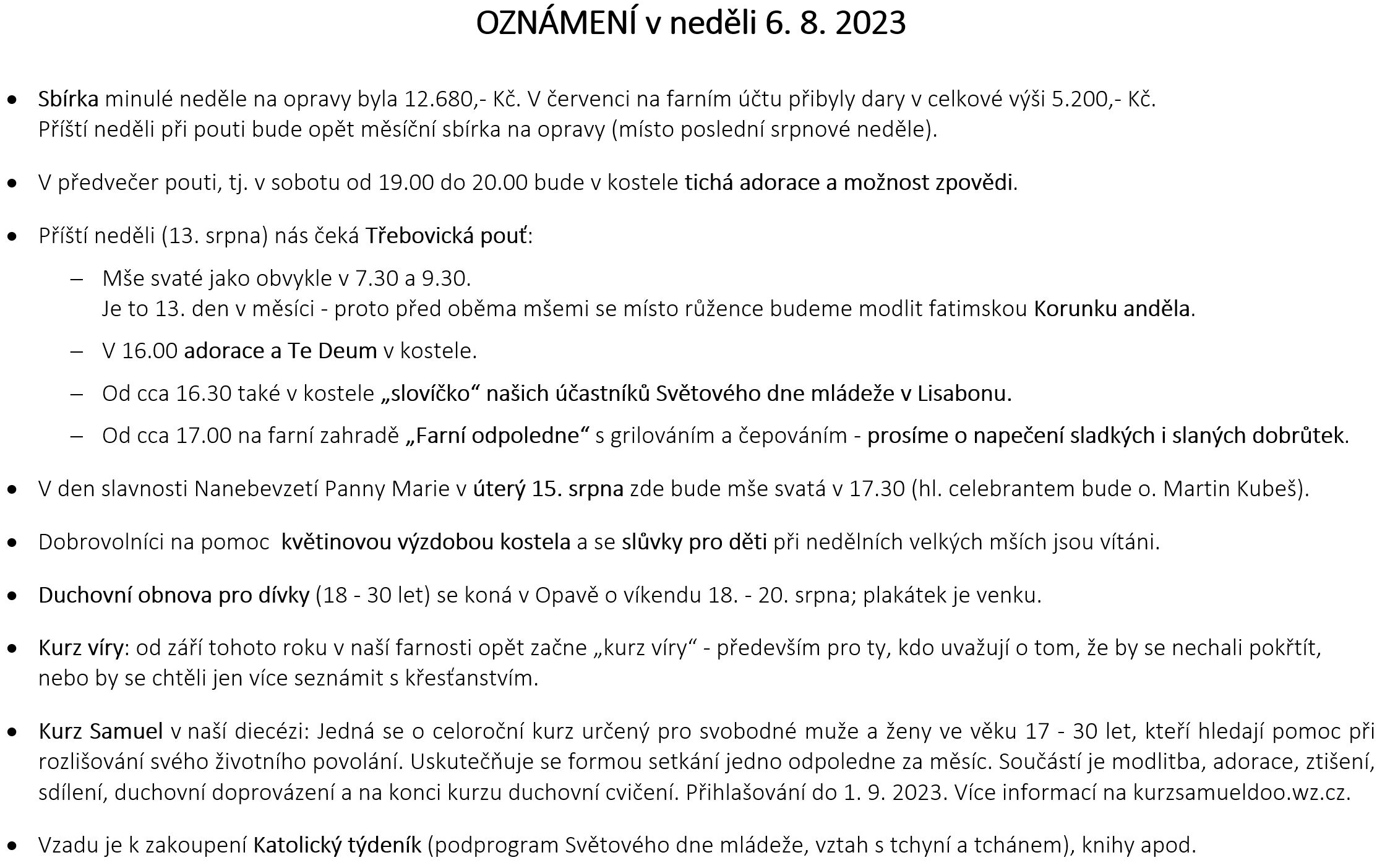 V neděli 6. srpna slavíme SVÁTEK PROMĚNĚNÍ PÁNĚ. Prohlédněte si pořad bohoslužeb a ohlášky.