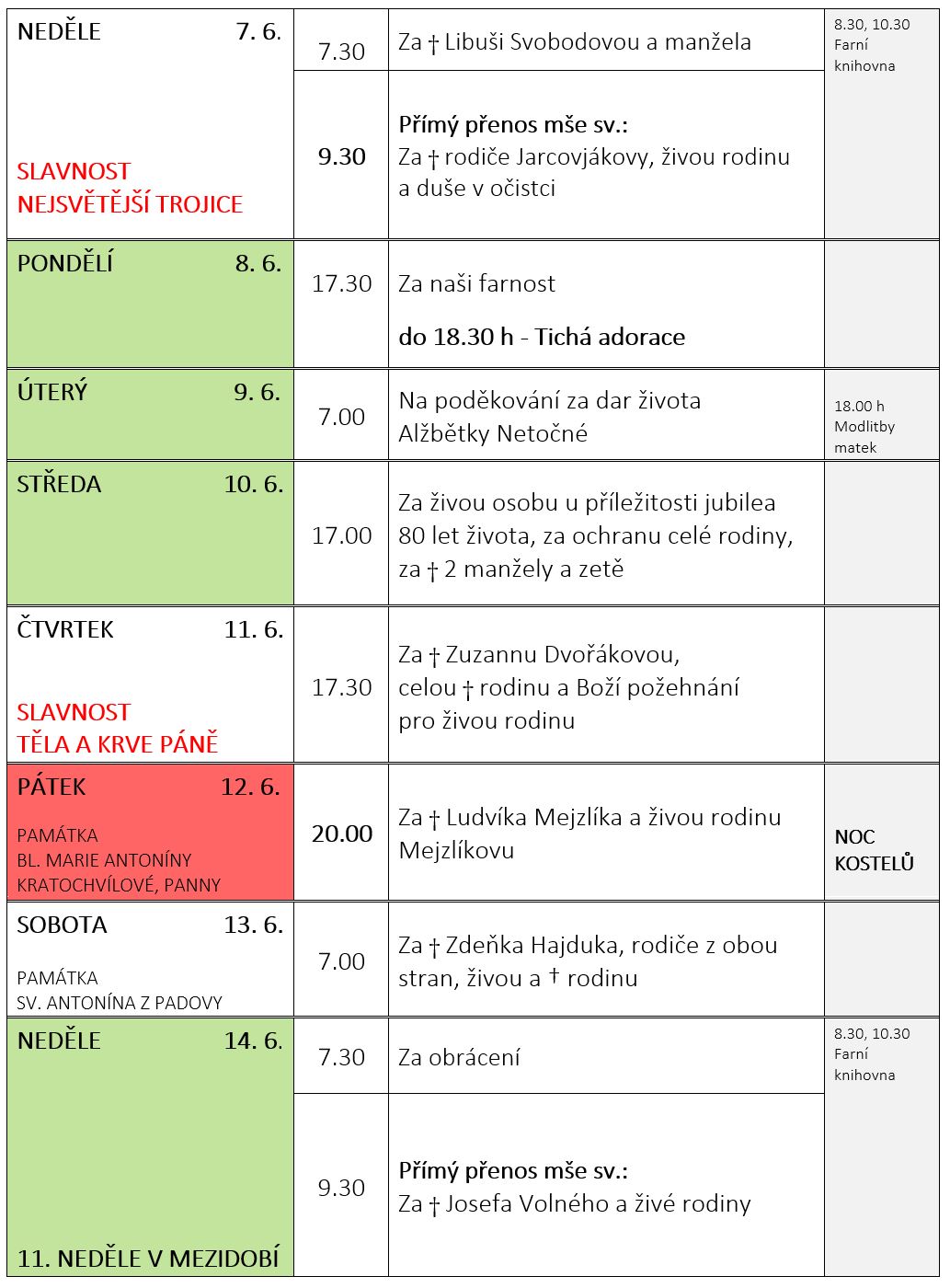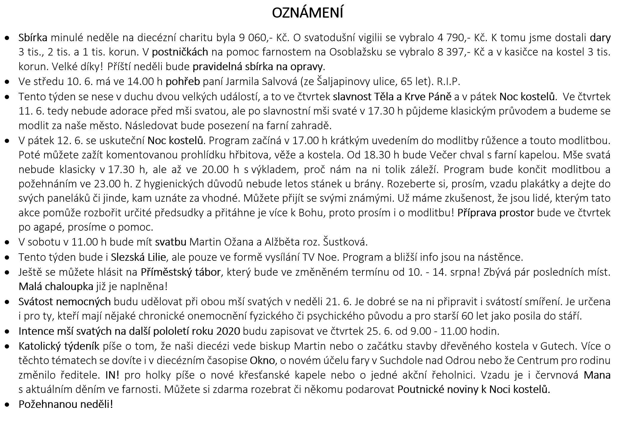 Ohlášky k 7. červnu