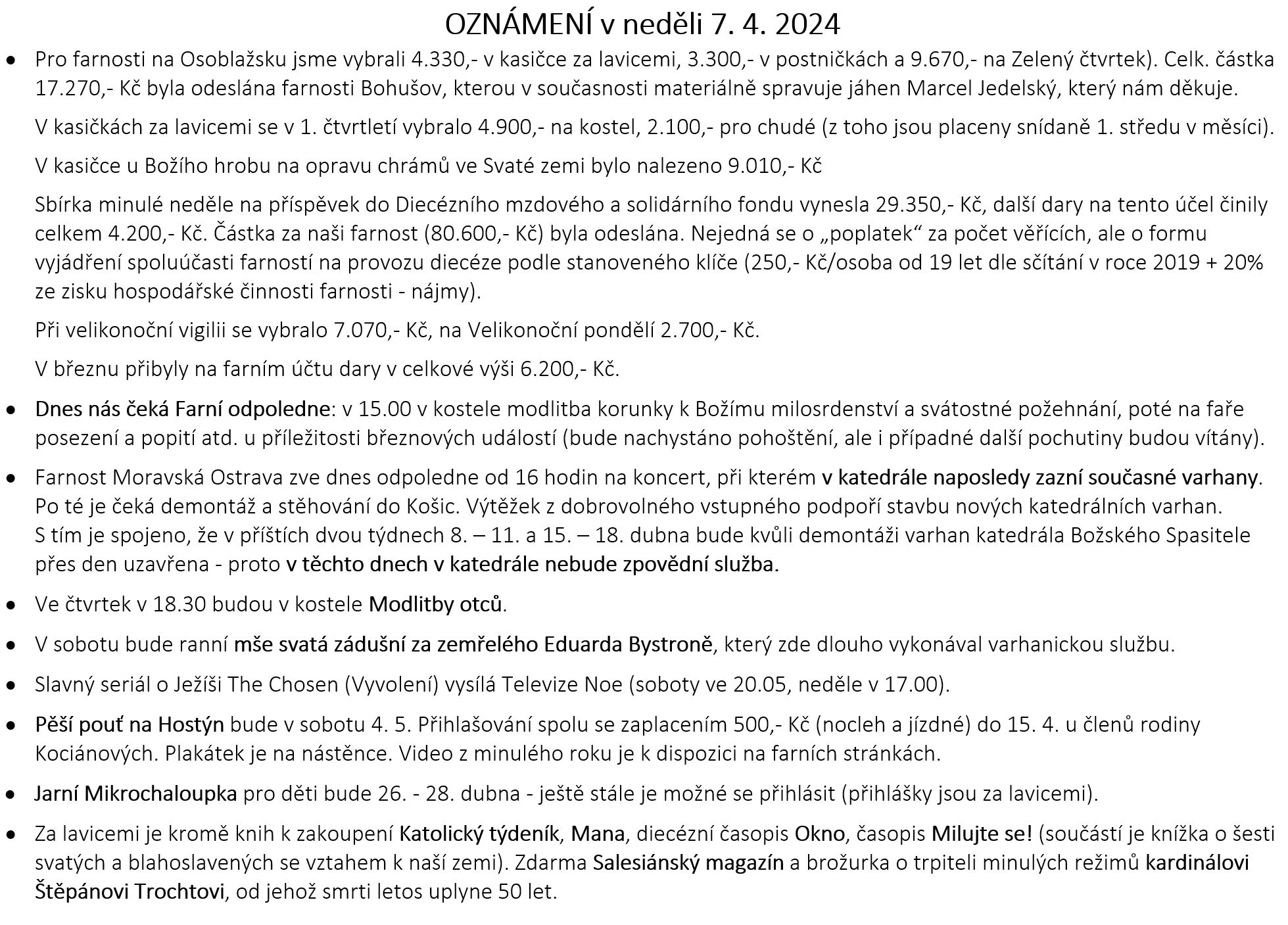 V neděli 7. dubna slavíme 2. NEDĚLI VELIKONOČNÍ – NEDĚLI BOŽÍHO MILOSRDENSTVÍ. Prohlédněte si pořad bohoslužeb a ohlášky