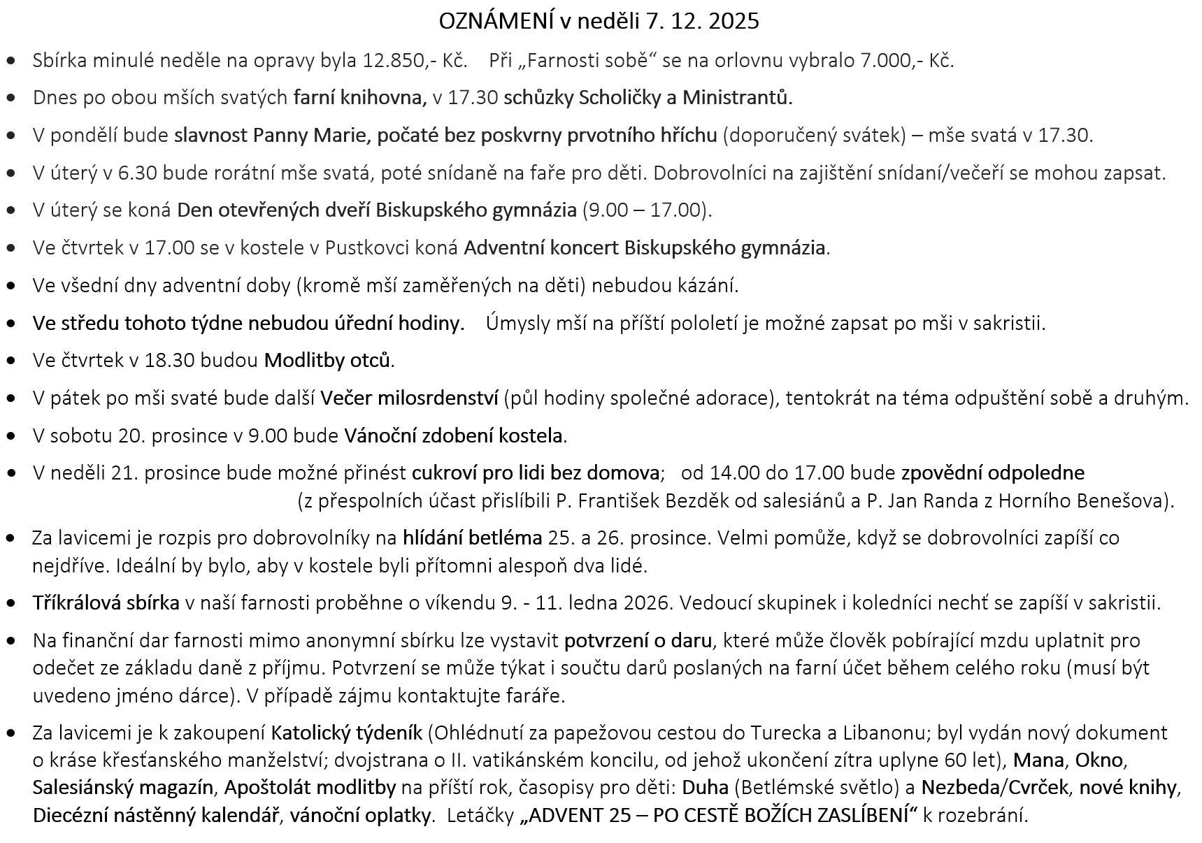 Ohlášky k 7. prosinci V neděli 7. prosince slavíme 2. NEDĚLI ADVENTNÍ. Prohlédněte si pořad bohoslužeb a ohlášky: Previous postOhlášky k 30. listopadu Next postOhlášky k 14. prosinci Komentáře nejsou povoleny.