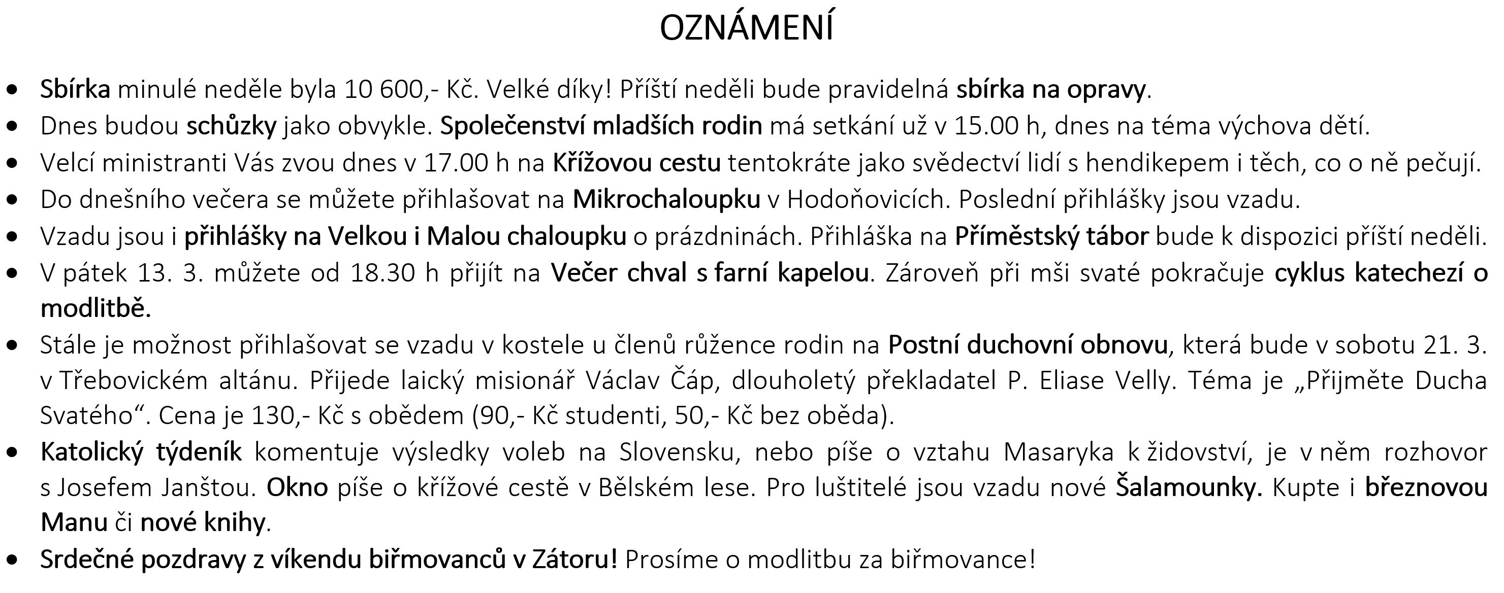 V neděli 8. března slavíme  2. NEDĚLI POSTNÍ. Prohlédněte si pořad bohoslužeb a ohlášky.