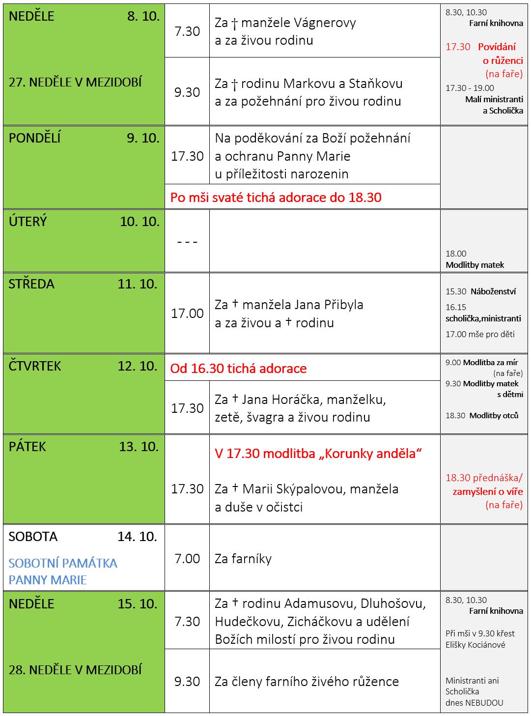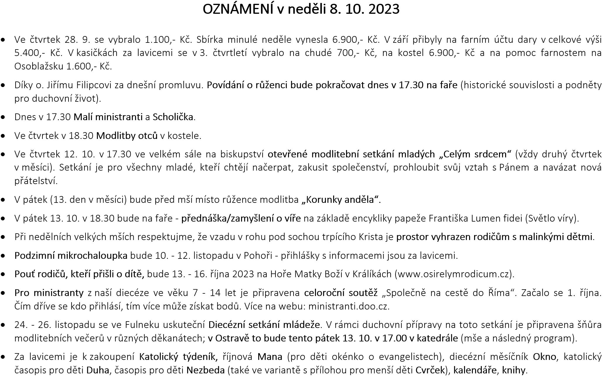 Ohlášky k 8. říjnu V neděli 8. října slavíme 27. NEDĚLI V MEZIDOBÍ. Prohlédněte si pořad bohoslužeb a ohlášky. Previous postOhlášky k 1. říjnu Next postOhlášky k 15. říjnu Komentáře nejsou povoleny.