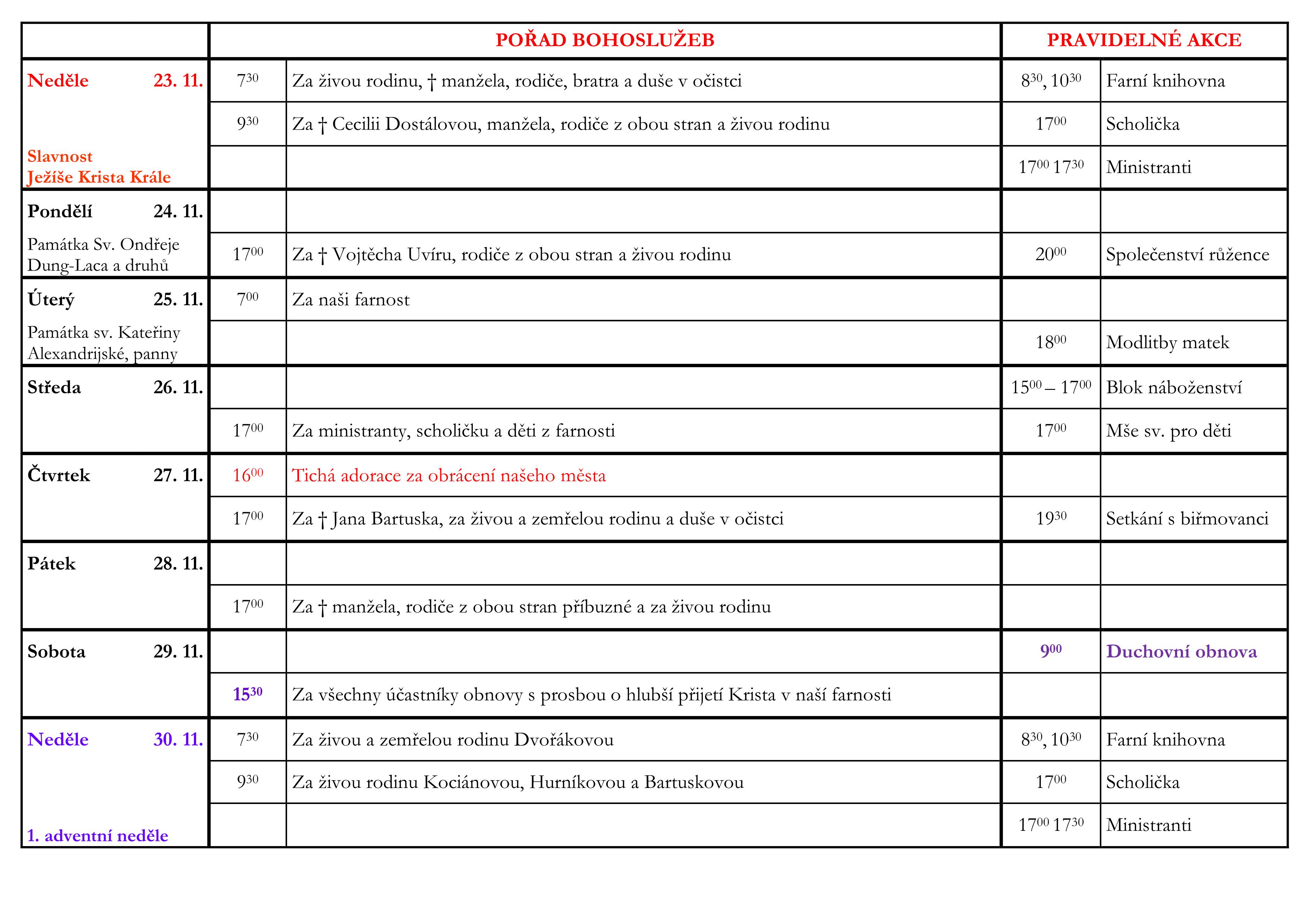 23. listopadu 2014 - pořad bohoslužeb   23. listopadu 2014 - ohlášky