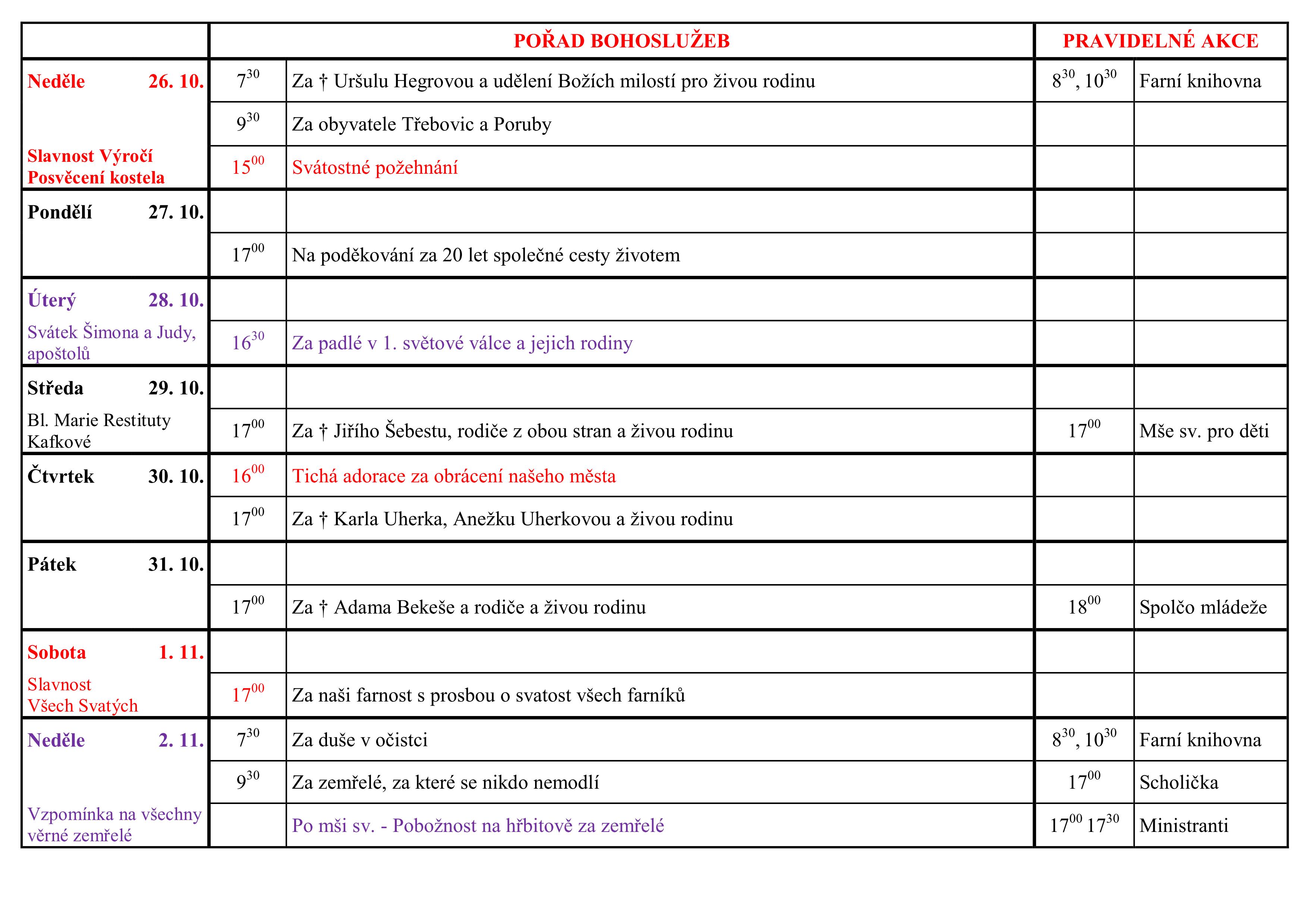 Slavnost Výročí posvěcení kostela – pořad bohoslužeb a ohlášky
