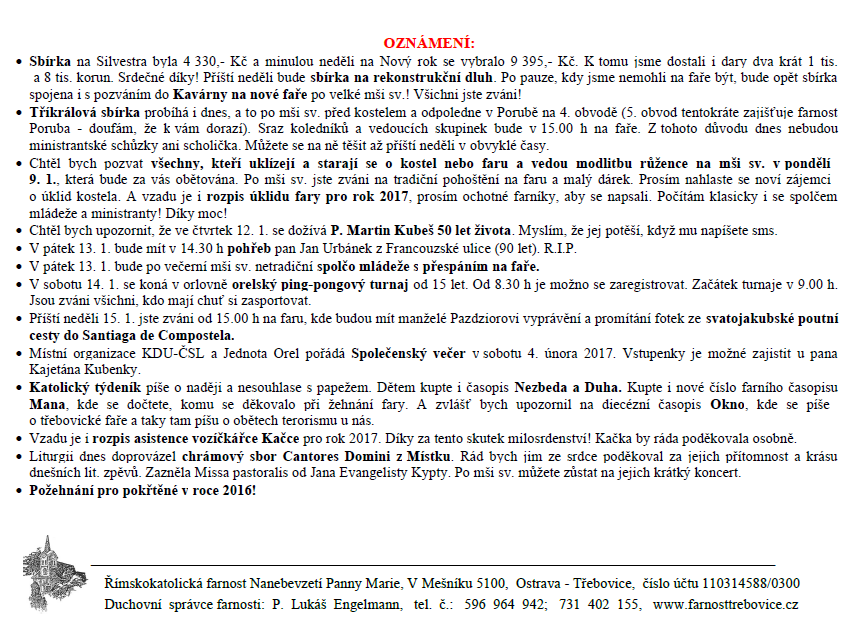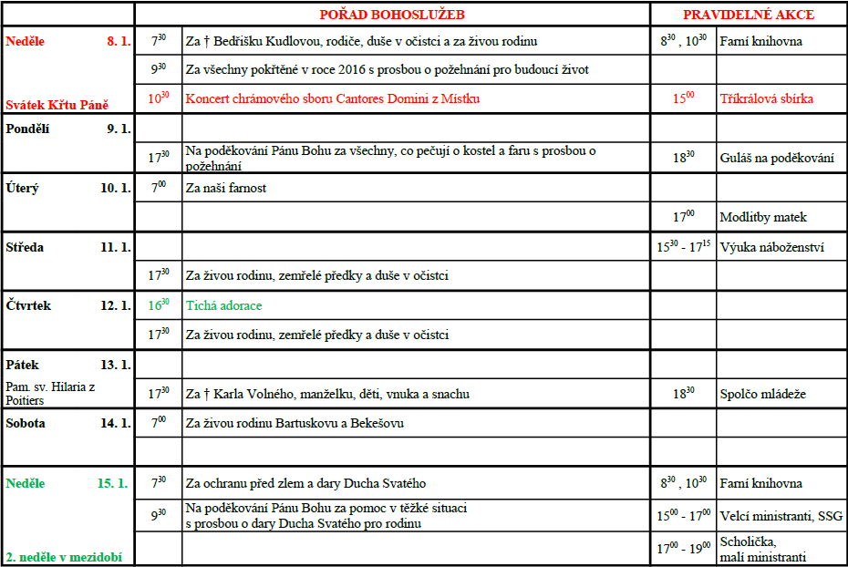 Svátek Křtu Páně V neděli 8. ledna slavíme Svátek Křtu Páně. Prohlédněte si pořad bohoslužeb a ohlášky. Previous postTříkrálový koncert 8. ledna 2017 v 10:30h Next post2. neděle v mezidobí Komentáře nejsou povoleny.