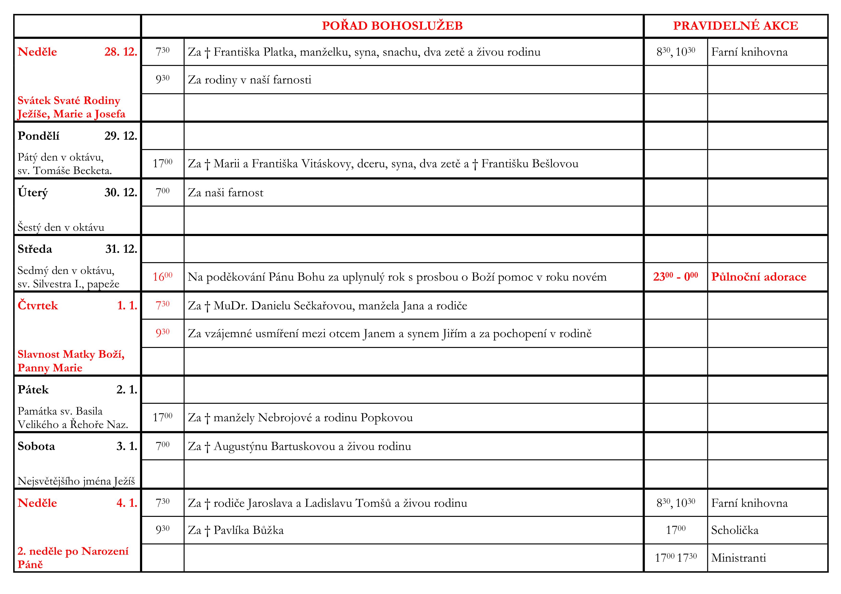 V neděli 28. prosince slavíme Svátek Svaté Rodiny. Prohlédněte si pořad bohoslužeb a ohlášky.