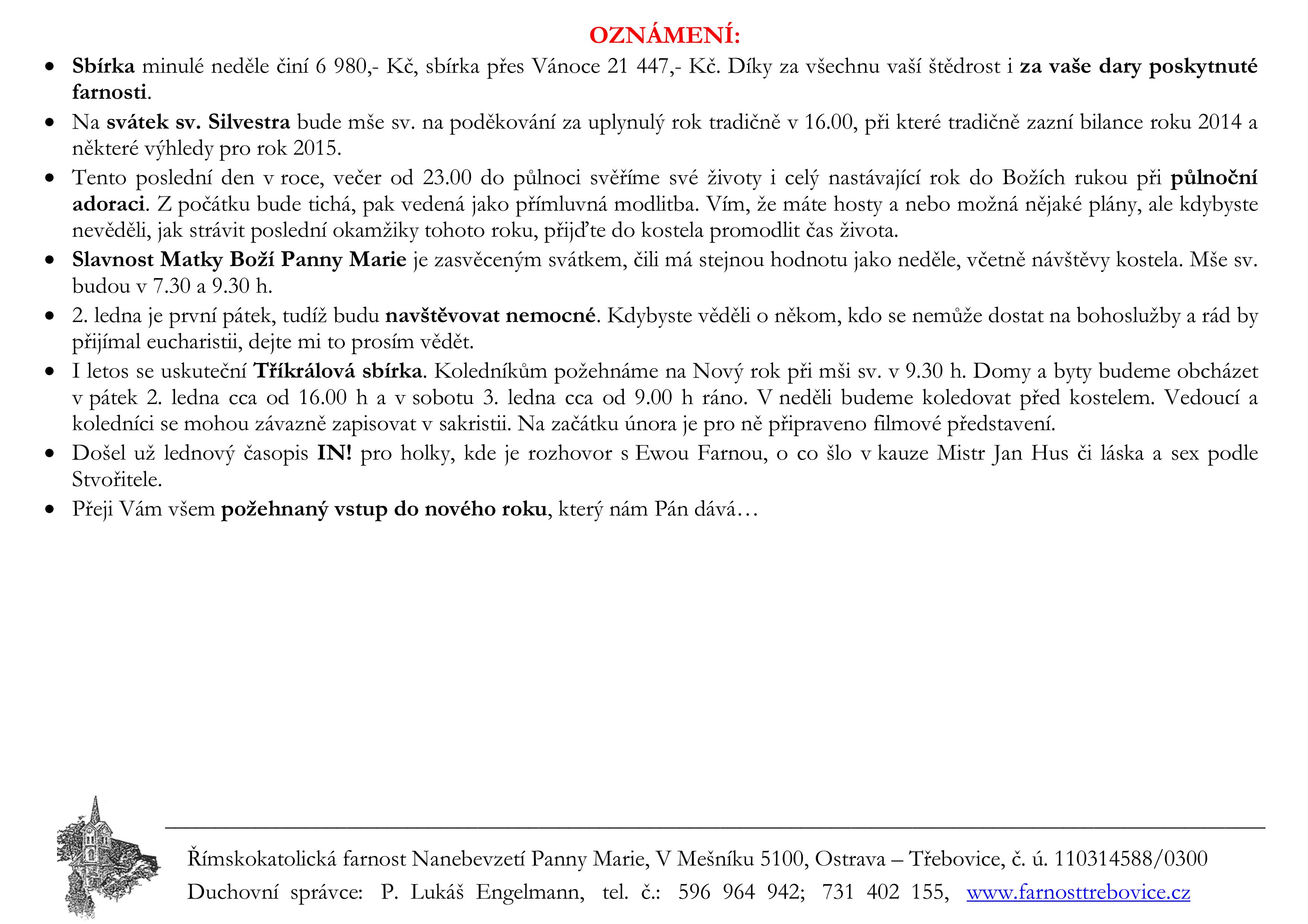 28. prosince 2014 - pořad bohoslužeb  28. prosince 2014 - ohlášky