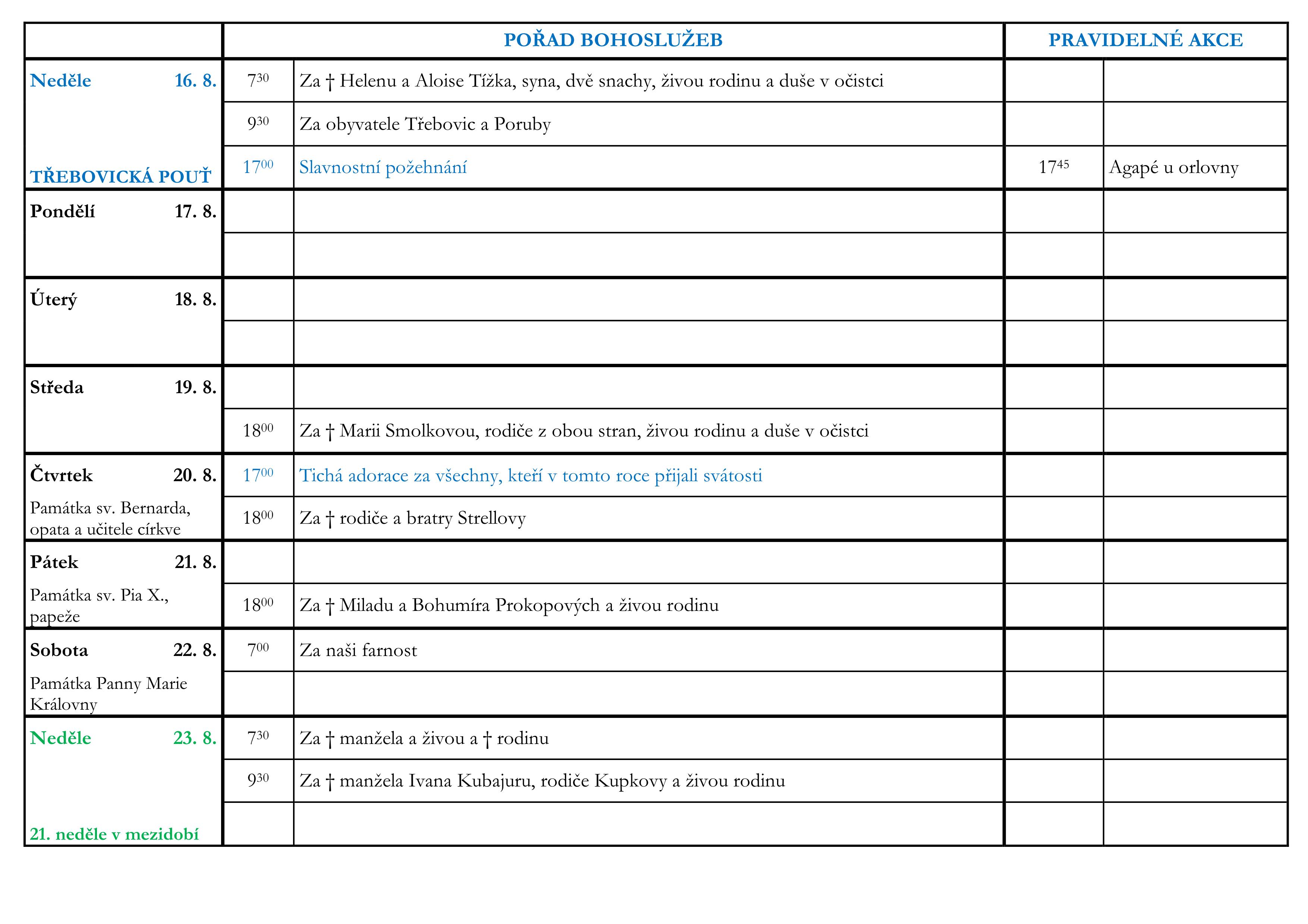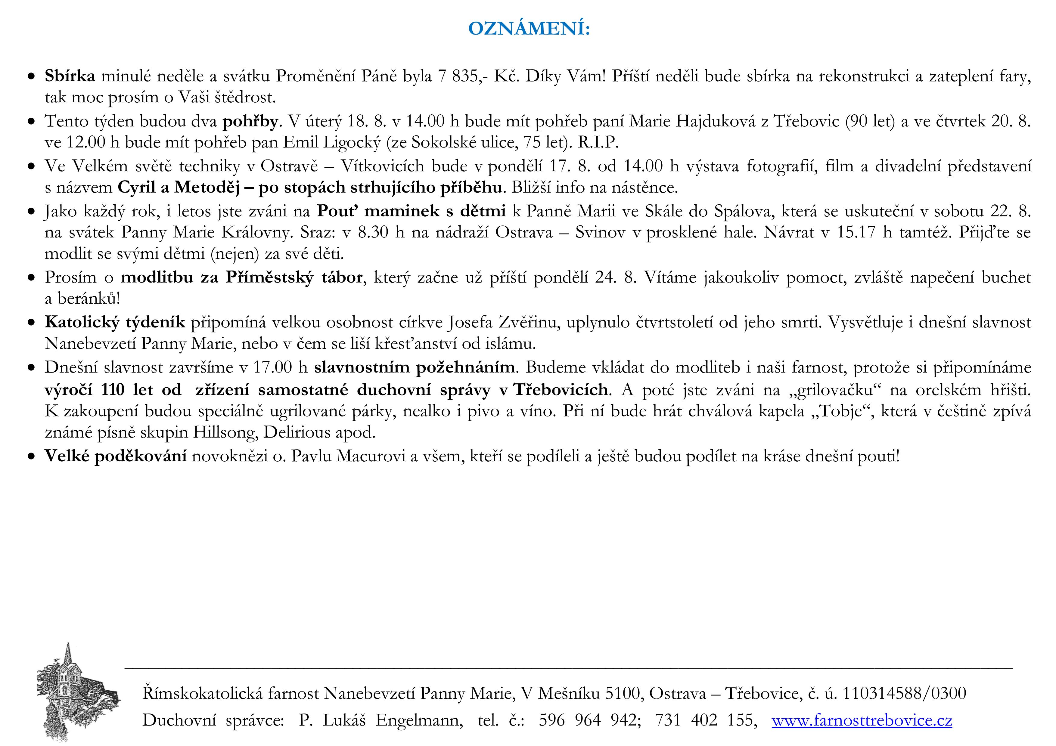 16. srpna 2015 - pořad bohoslužeb  16. srpna 2015 - ohlášky